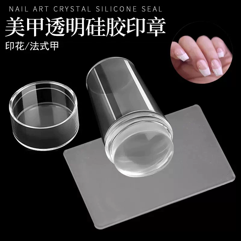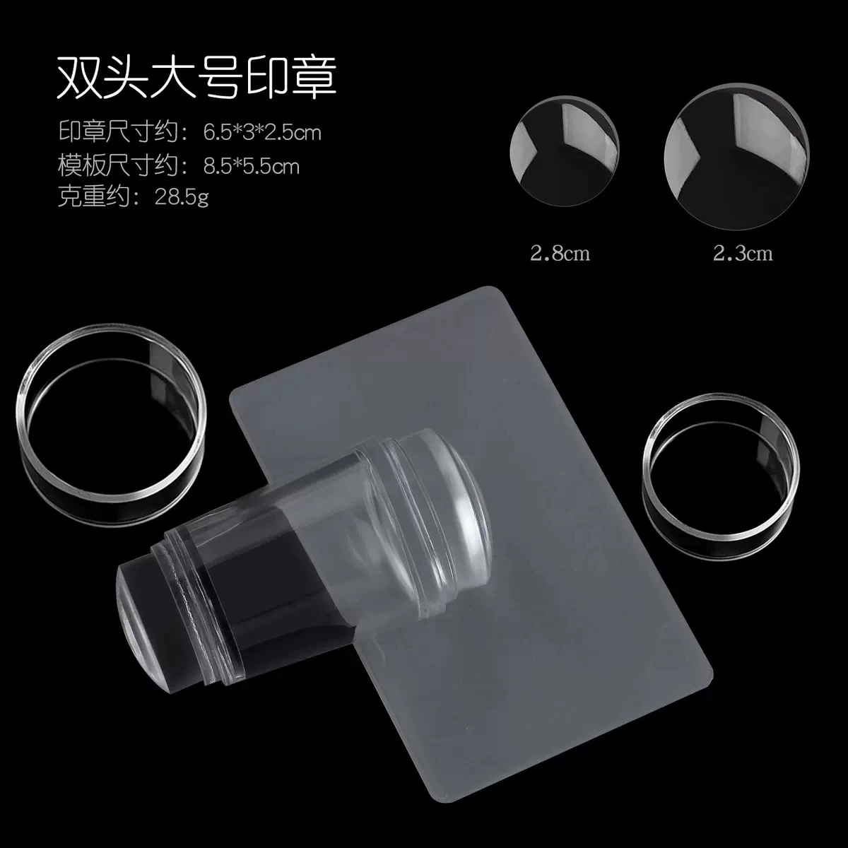 | nameOriginal | Internet celebrity hot style nail art silicone French seal transparent transfer head scraper printing tool double head cover steel plate set |