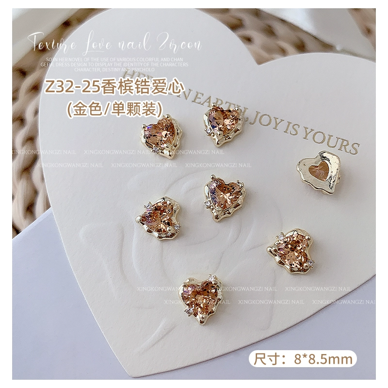 | nameOriginal | Internet celebrity hot texture love zircon manicure jewelry super flash champagne pink blue three-dimensional alloy nail accessories |