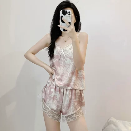 | nameOriginal | Internet celebrity ice silk shorts student girls three-piece pajamas |