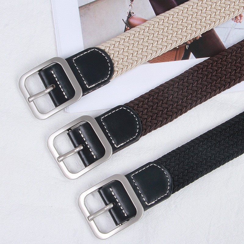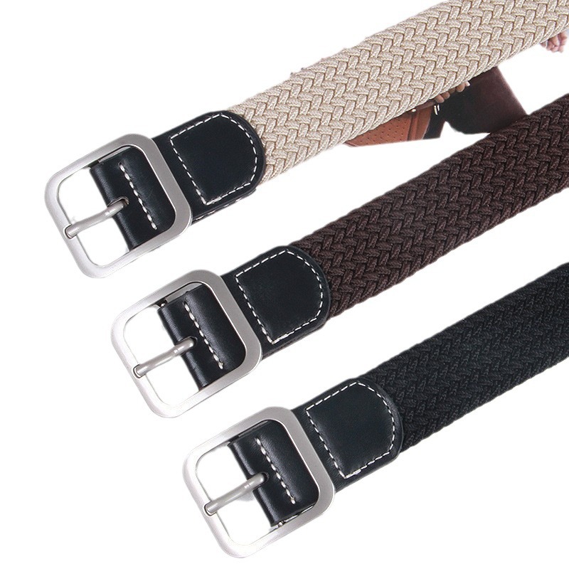 Internet Celebrity Ins Stretch Braided Belt Fashionable Young Canvas Belt Pin Buckle Elastic Trousers Men's All-match Leather