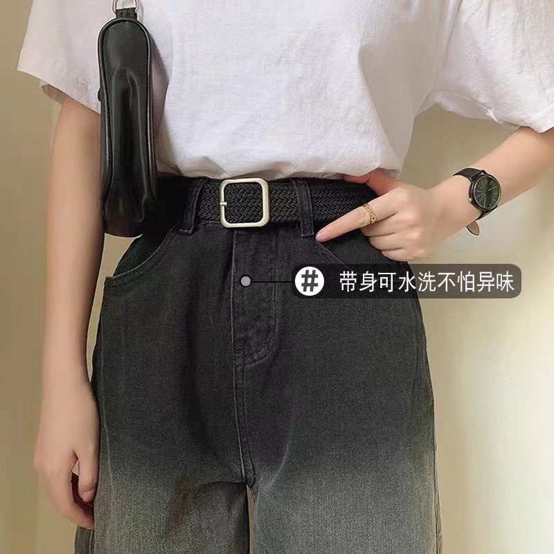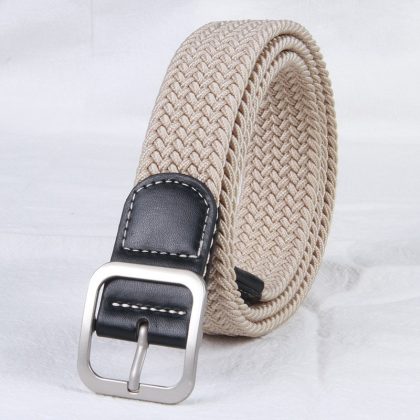 Internet Celebrity Ins Stretch Braided Belt Fashionable Young Canvas Belt Pin Buckle Elastic Trousers Men’s All-match Leather