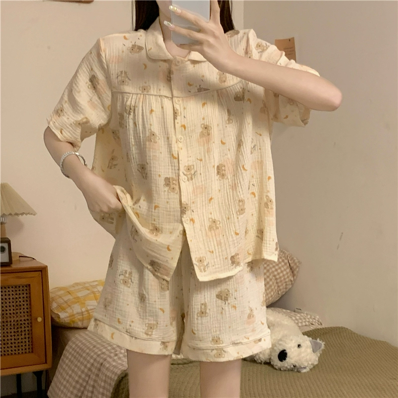 Internet celebrity Japanese cotton and linen ins women’s home clothes cartoon