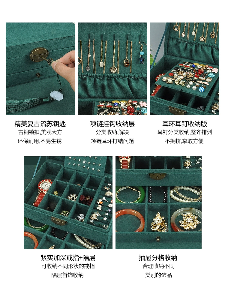 | nameOriginal | Internet celebrity jewelry box, extra large capacity, retro bronze lock, high-end earrings, earrings, ring storage box, multi-layer display stand |