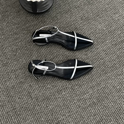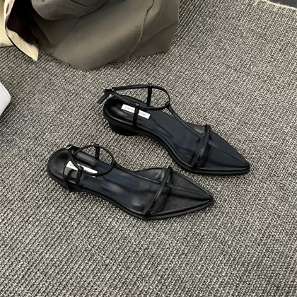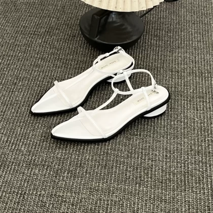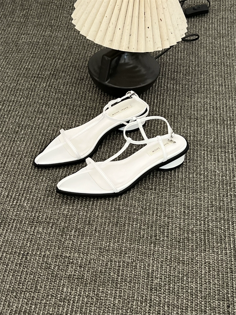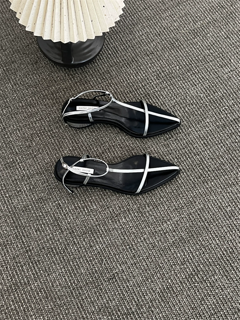 Internet celebrity Korean style silver pointed toe thick heel buckle sandals