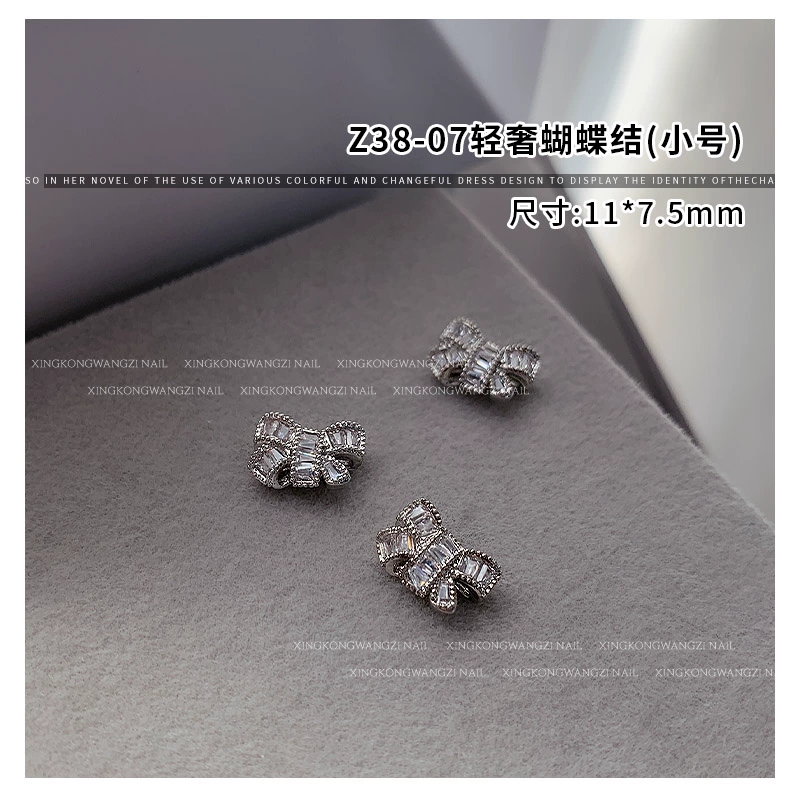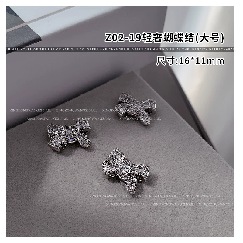 | nameOriginal | Internet celebrity light luxury bow manicure alloy zircon jewelry 2024 new diamond-encrusted silver three-dimensional nail accessories |