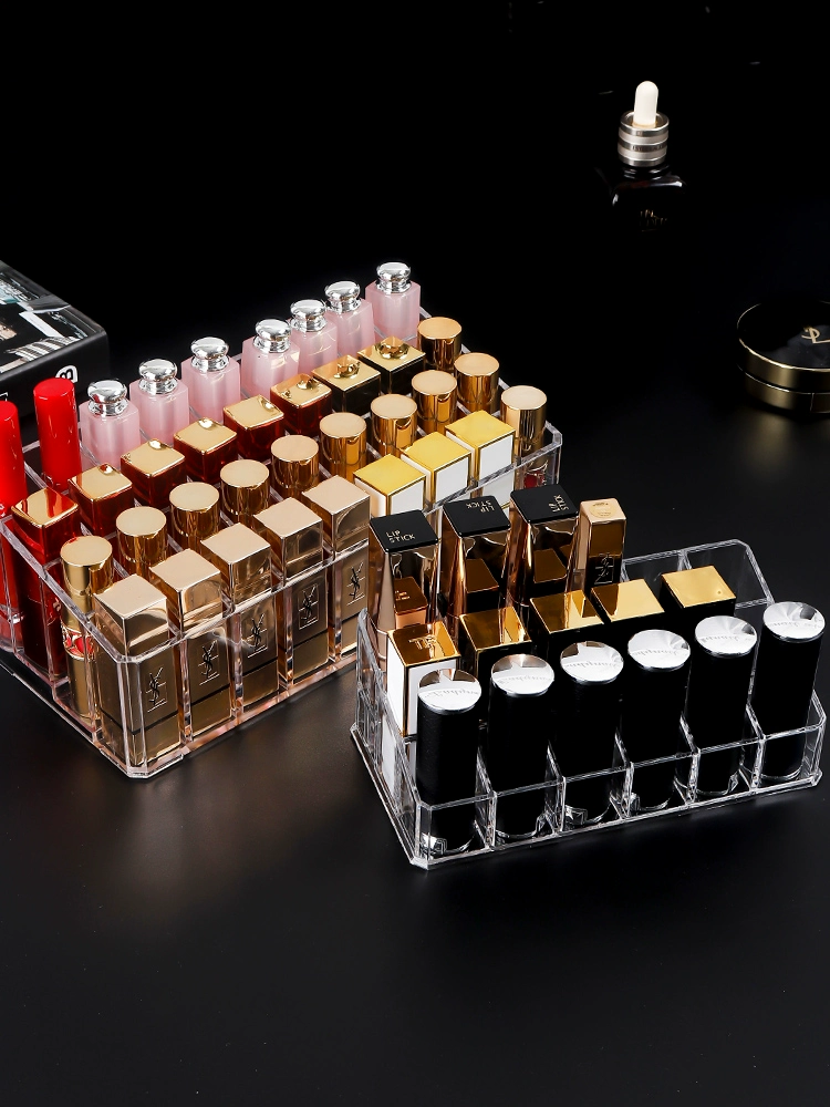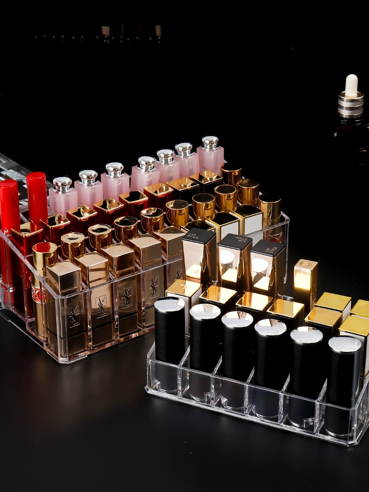 | nameOriginal | Internet celebrity lipstick storage box with lid, women's small display rack with multiple compartments for storing cosmetics, dust-proof lipstick box |
