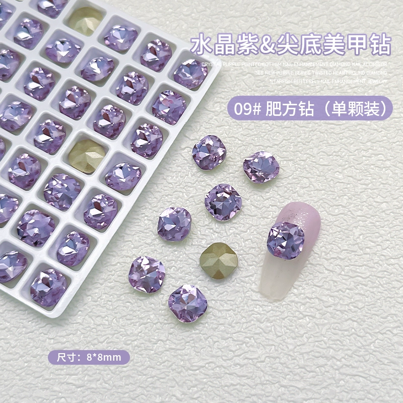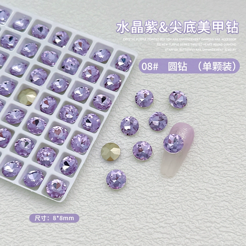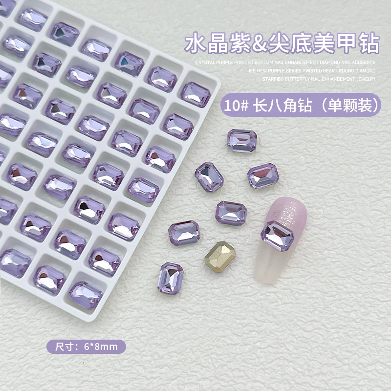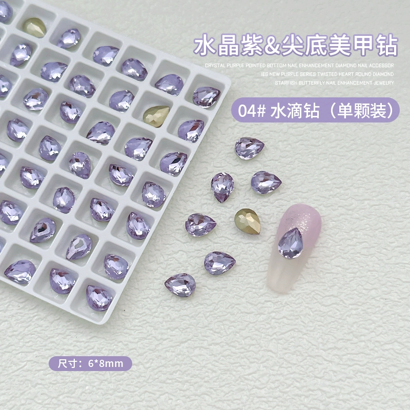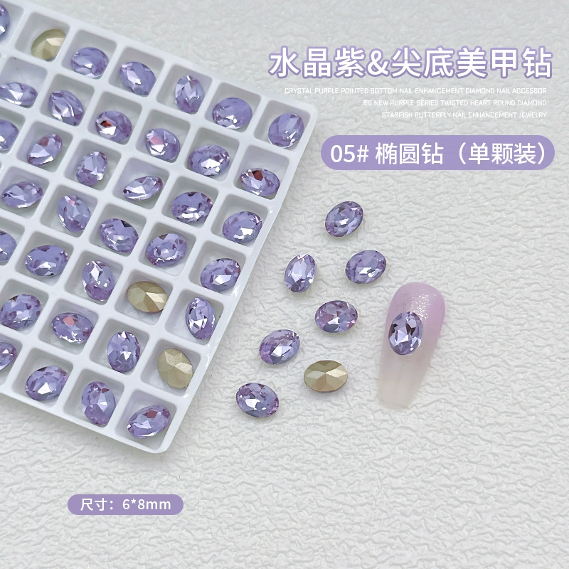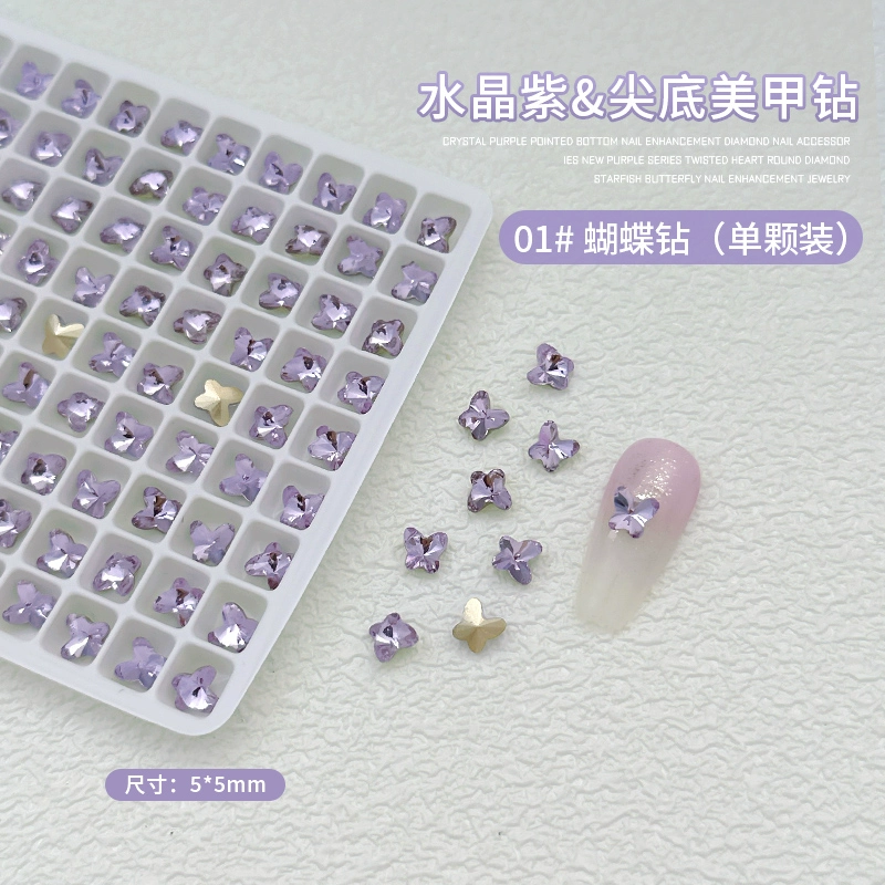| nameOriginal | Internet celebrity manicure high-end crystal purple pointed base special-shaped diamond super flash starfish crooked heart butterfly purple glass large diamond |