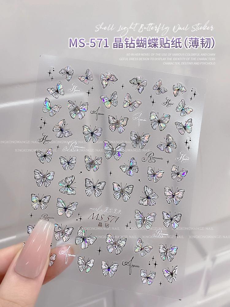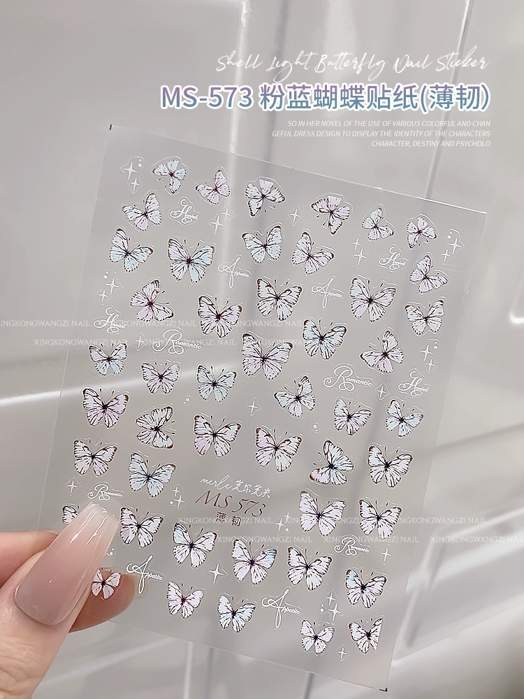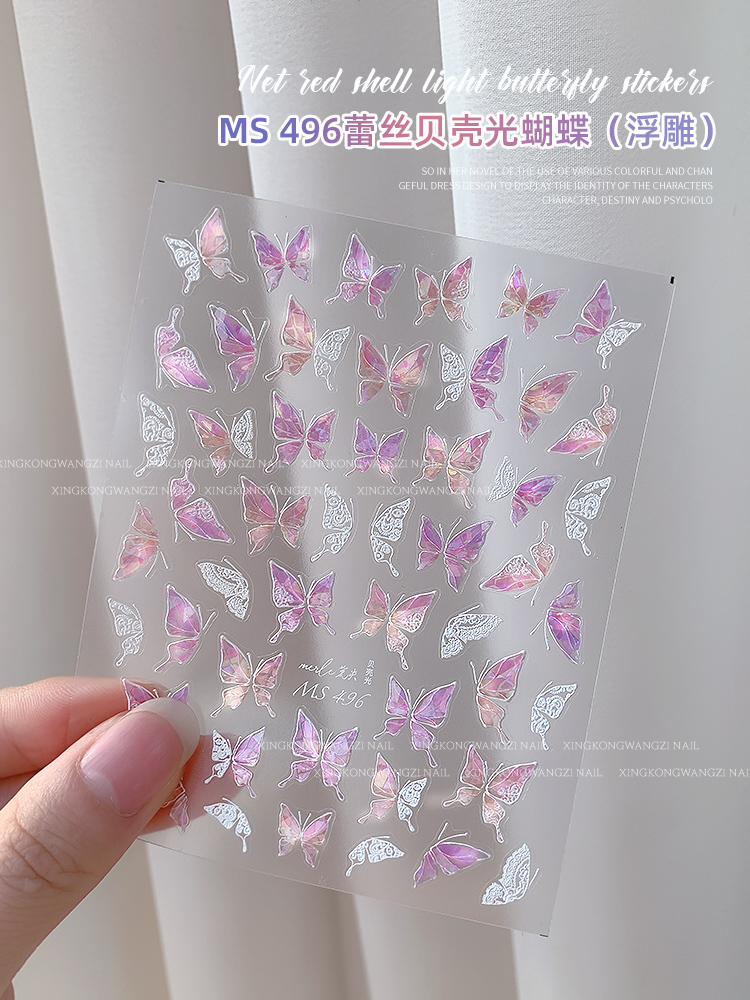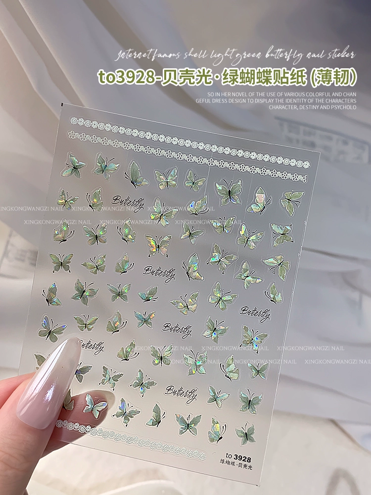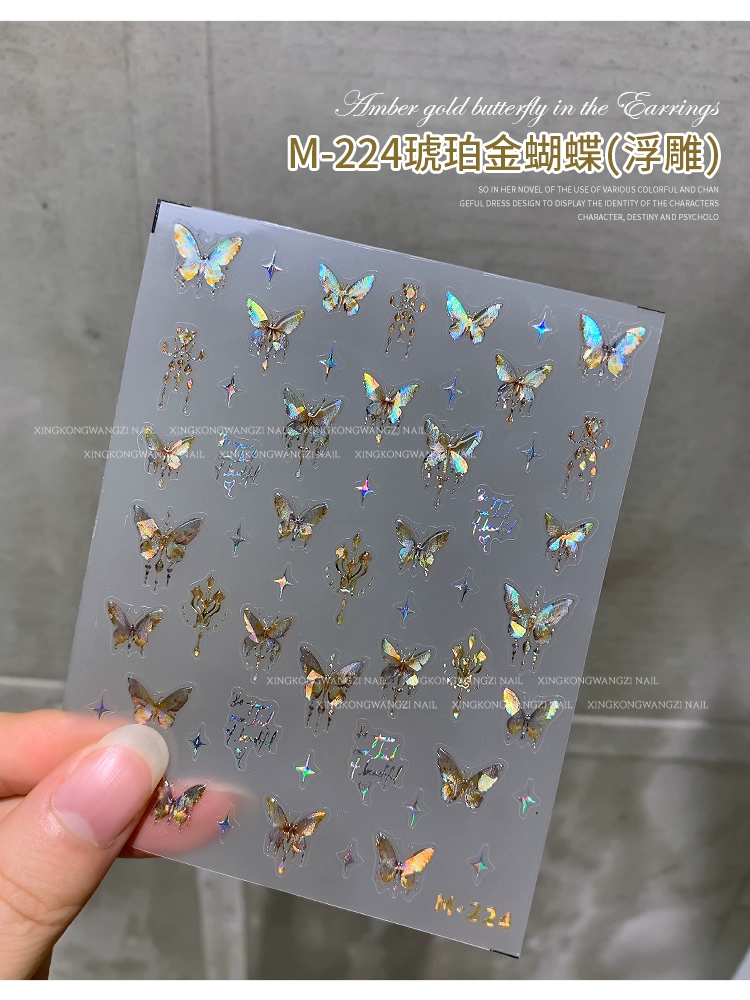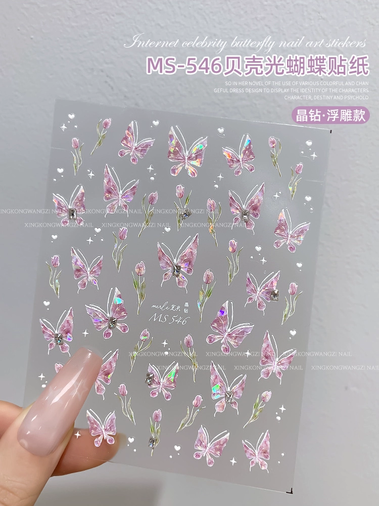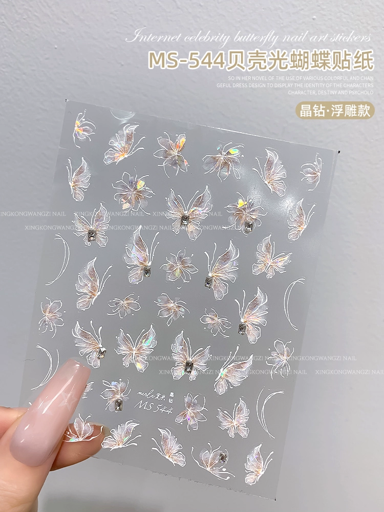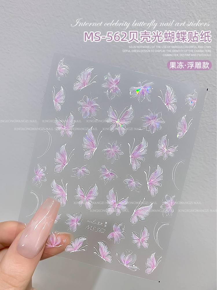 | nameOriginal | Internet celebrity manicure high-end shell light pure desire blues butterfly sticker 2024 new super fairy embossed butterfly sticker |