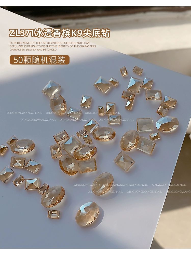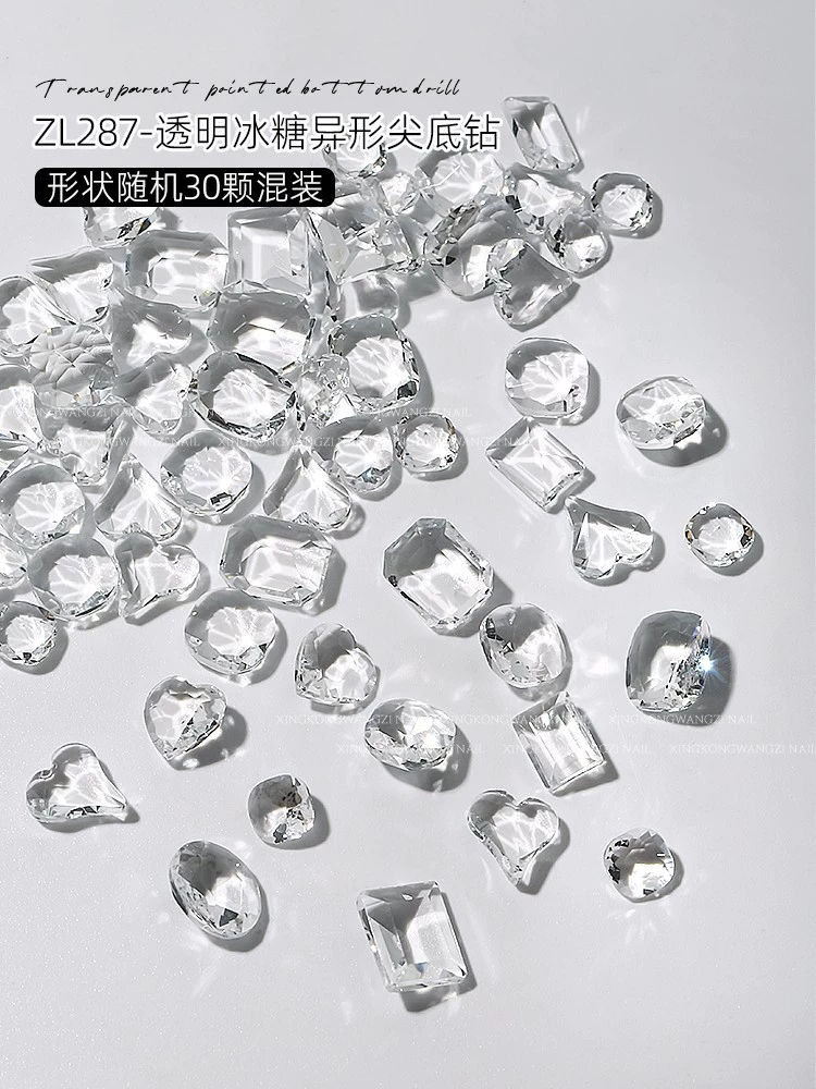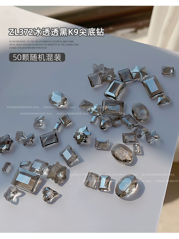 Internet celebrity manicure ice transparent special-shaped sharp bottom diamond 2024 new autumn and winter color rose champagne transparent black K9 nail decorations