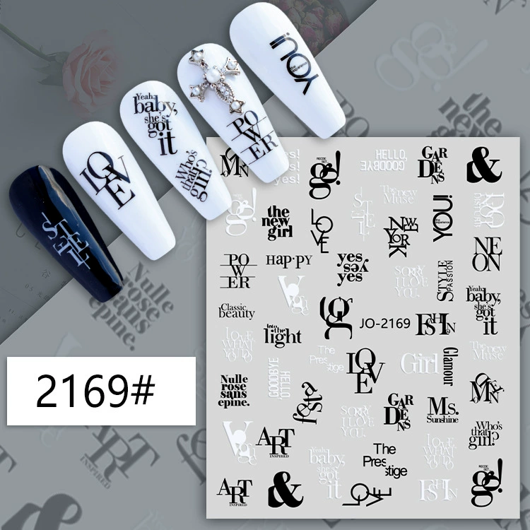 | nameOriginal | Internet celebrity new black and white English letter manicure stickers nail decoration small pattern decal jewelry abstract human face |