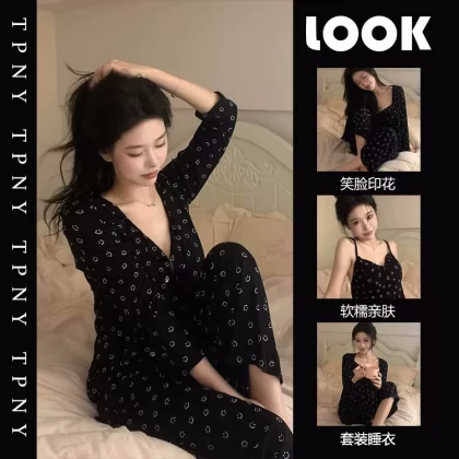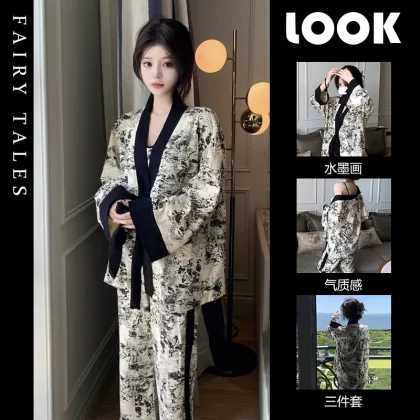 nameOriginal | Internet celebrity new Chinese style ink painting women's three-piece pajamas |
