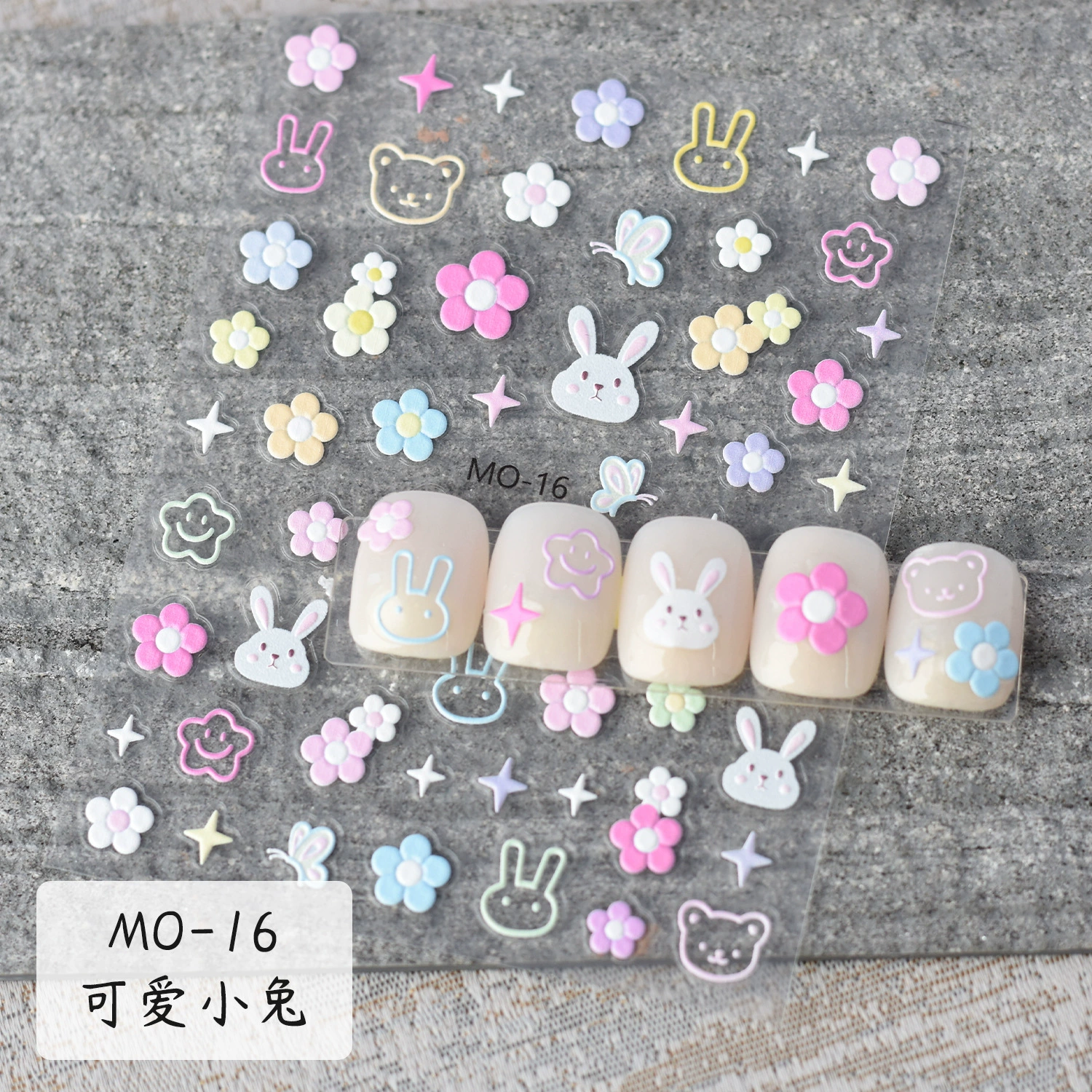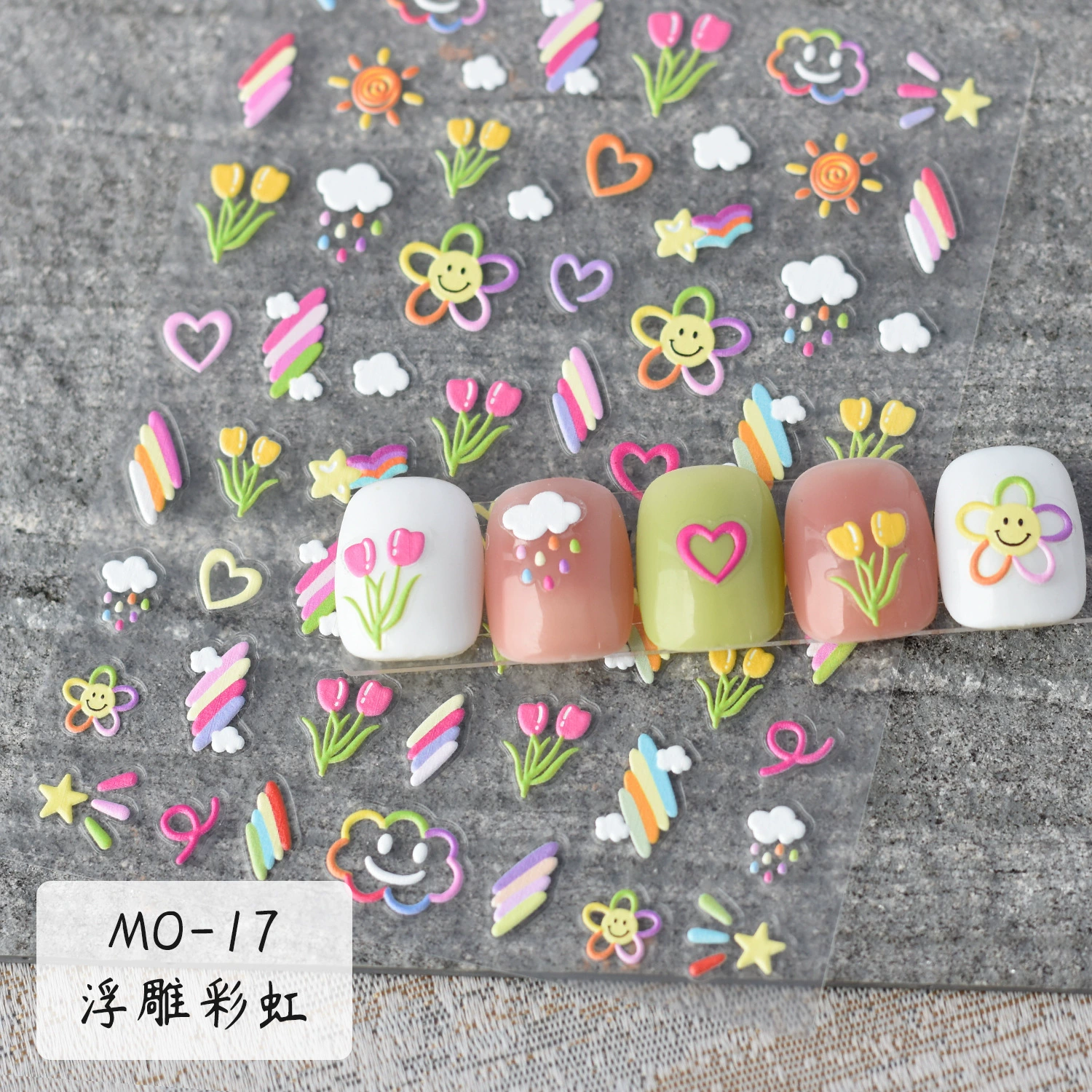 | nameOriginal | Internet celebrity new embossed tulip rainbow nail art sticker 5D cute bunny flower starburst nail sticker |
