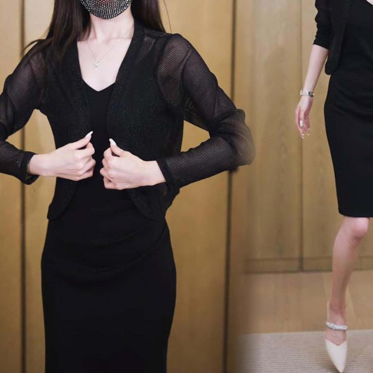| nameOriginal | Internet Celebrity New Long Sleeve Small Shawl Top Coat with Slip Skirt Short Cardigan plus size Loose Blouse |