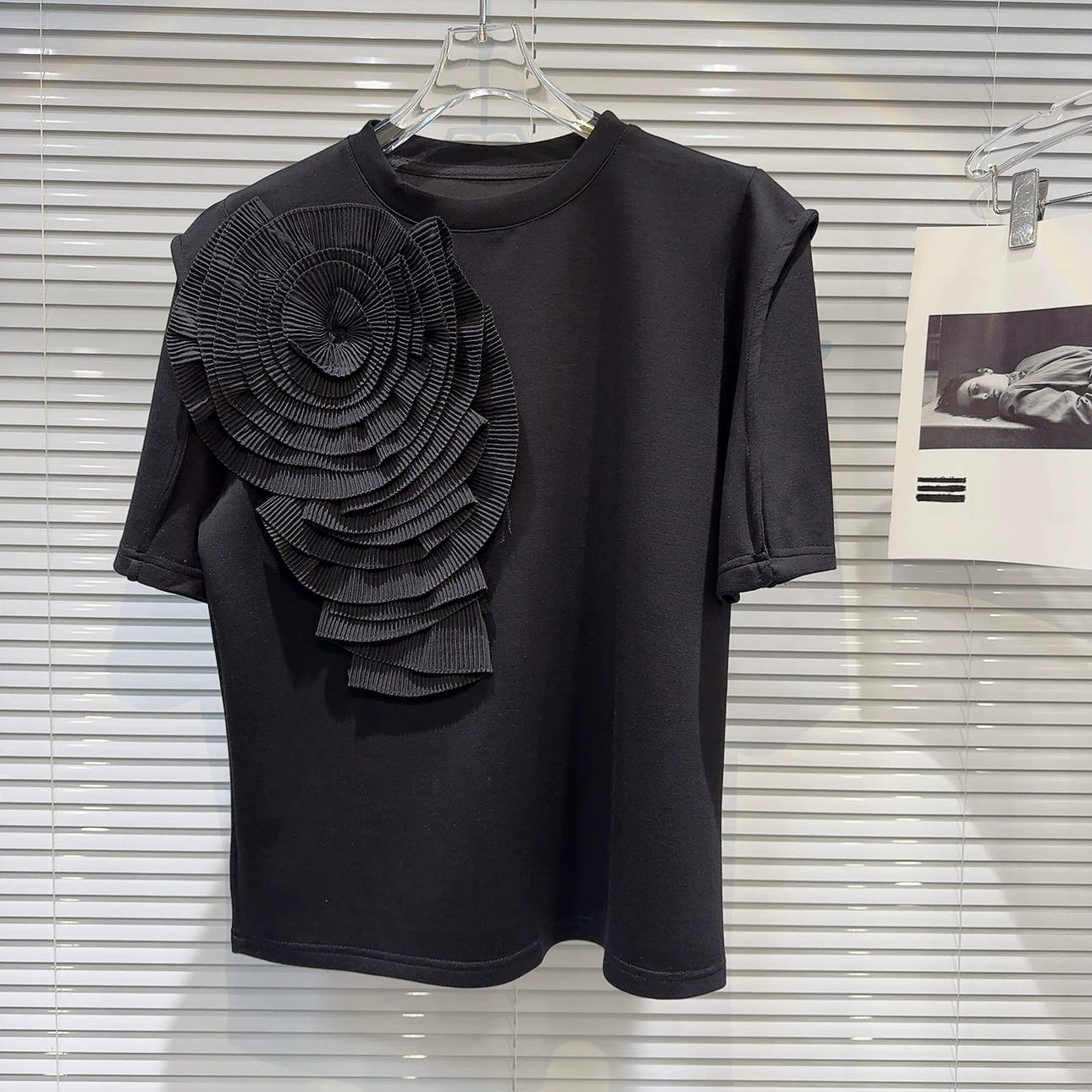 | nameOriginal | Internet celebrity niche pleated short-sleeved T-shirt with three-dimensional flowers |