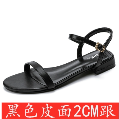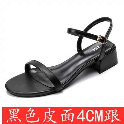 | nameOriginal | Internet celebrity open toe slimming thick heel genuine leather sandals with straps |