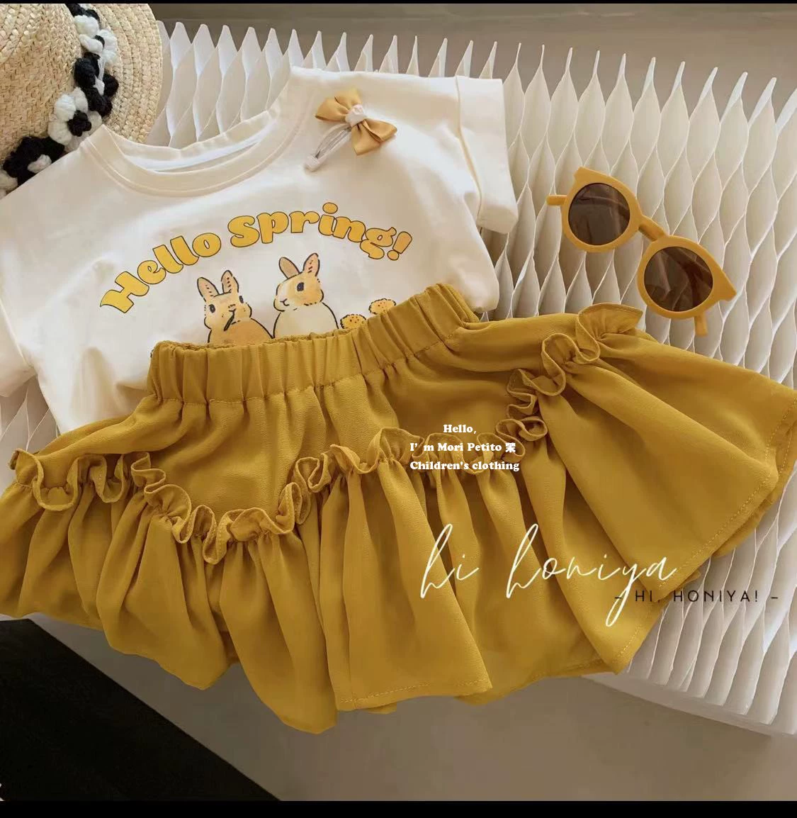 Internet celebrity parent-child summer dress girls short-sleeved T-shaped chiffon skirt half-length long skirt suit mother-daughter dress