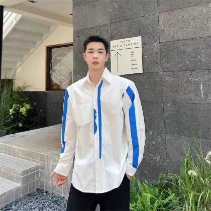 | nameOriginal | Internet celebrity patchwork contrast color long-sleeved raw edge yuppie shirt |