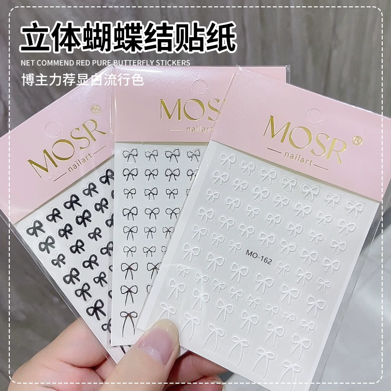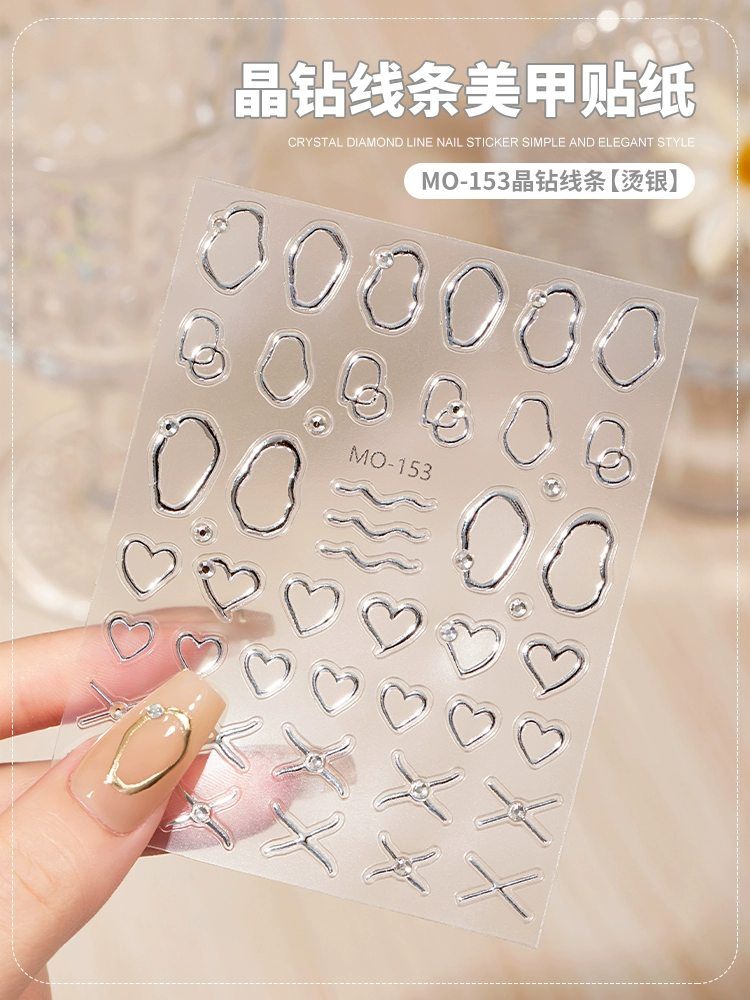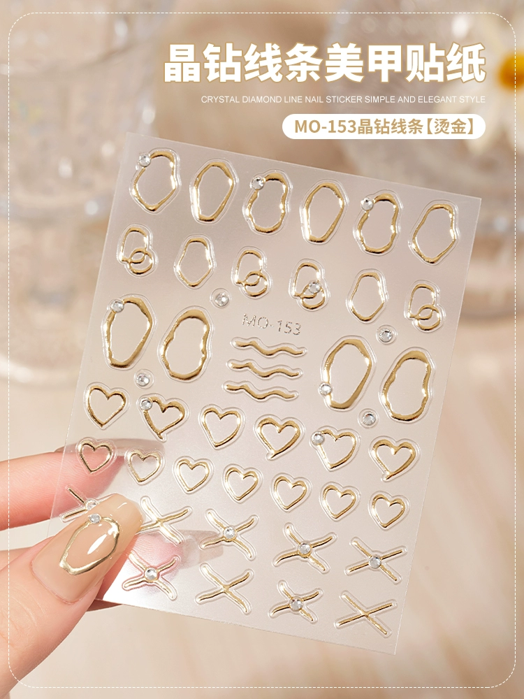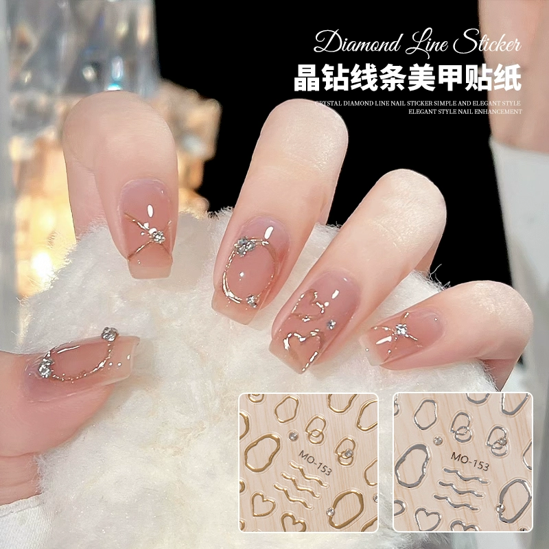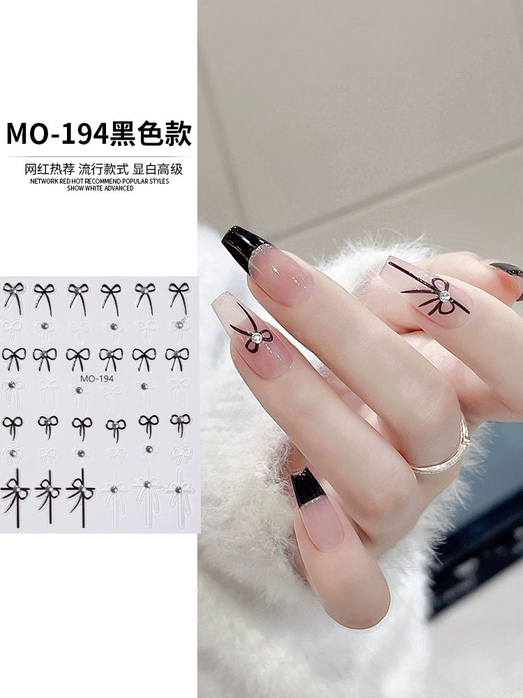 Internet celebrity hot crystal diamond bow nail art sticker 2025 new new year red belt line nail decal decoration