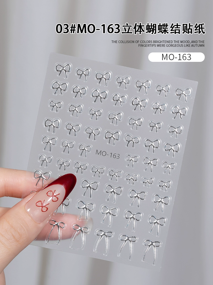 Internet celebrity popular crystal diamond bow nail stickers 2024 new New Year red with lines nail decal decorations