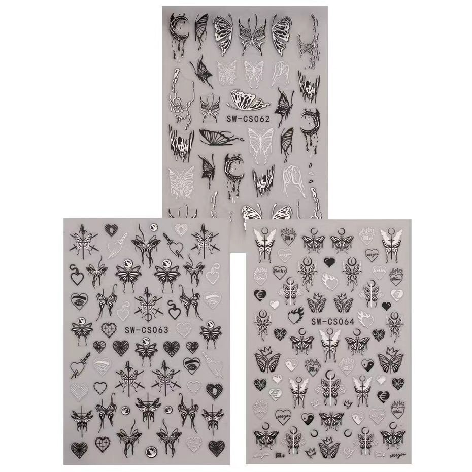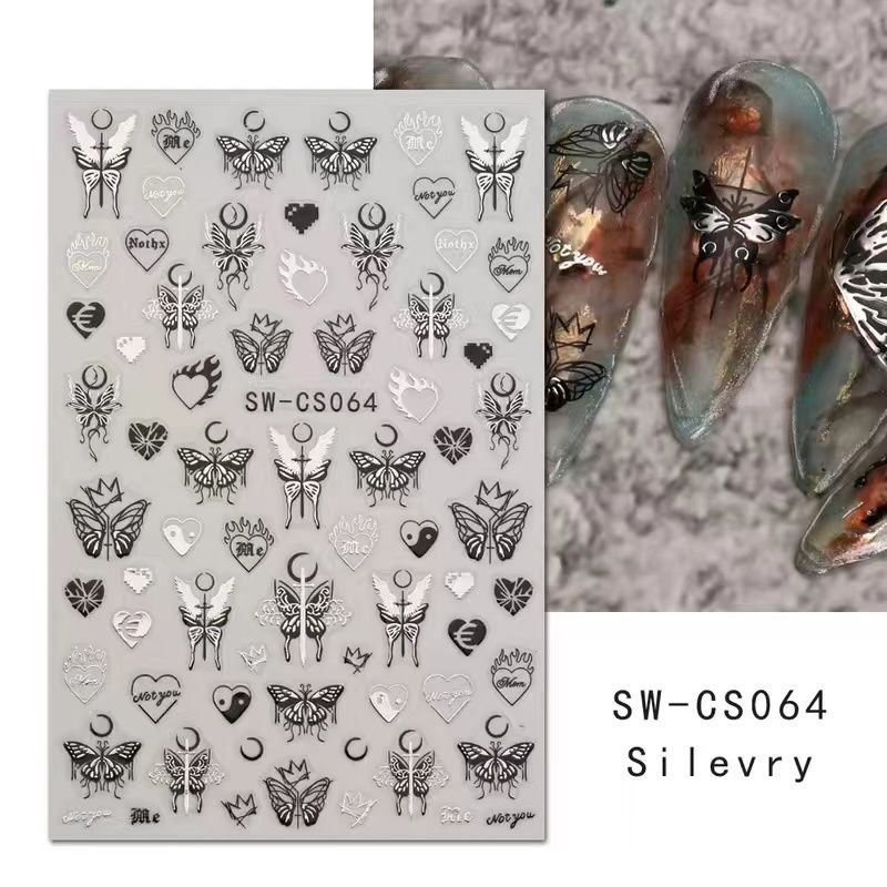 | nameOriginal | Internet celebrity popular dark metal silver butterfly nail art sticker silver liquid butterfly 3D jewelry adhesive patch |