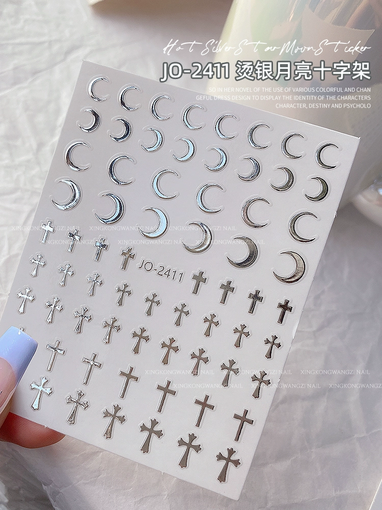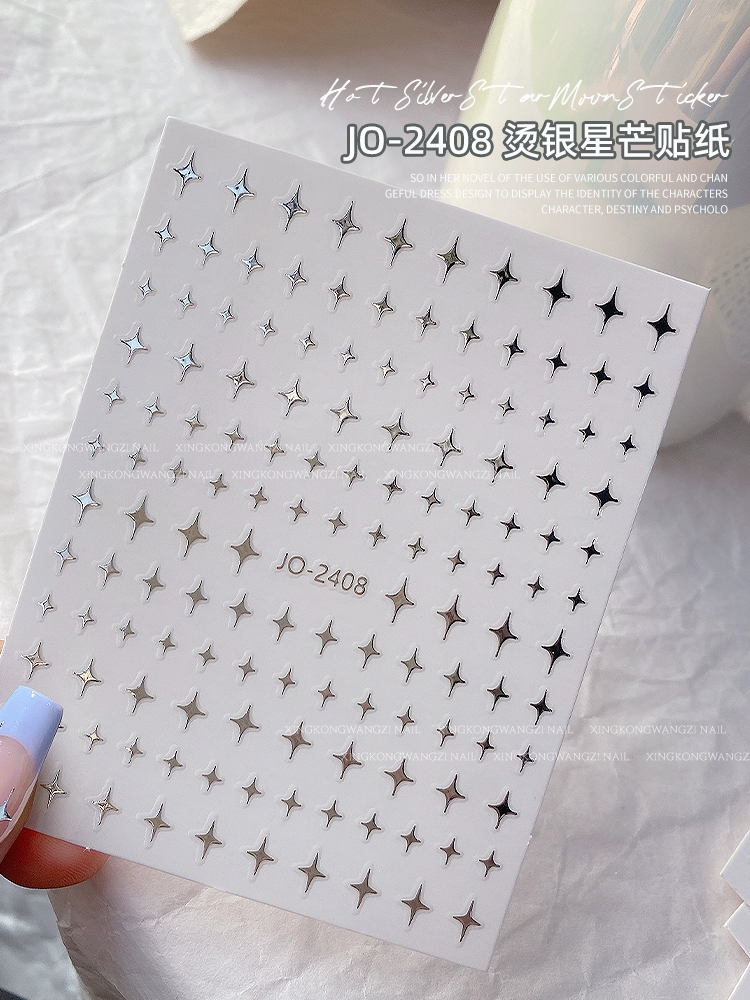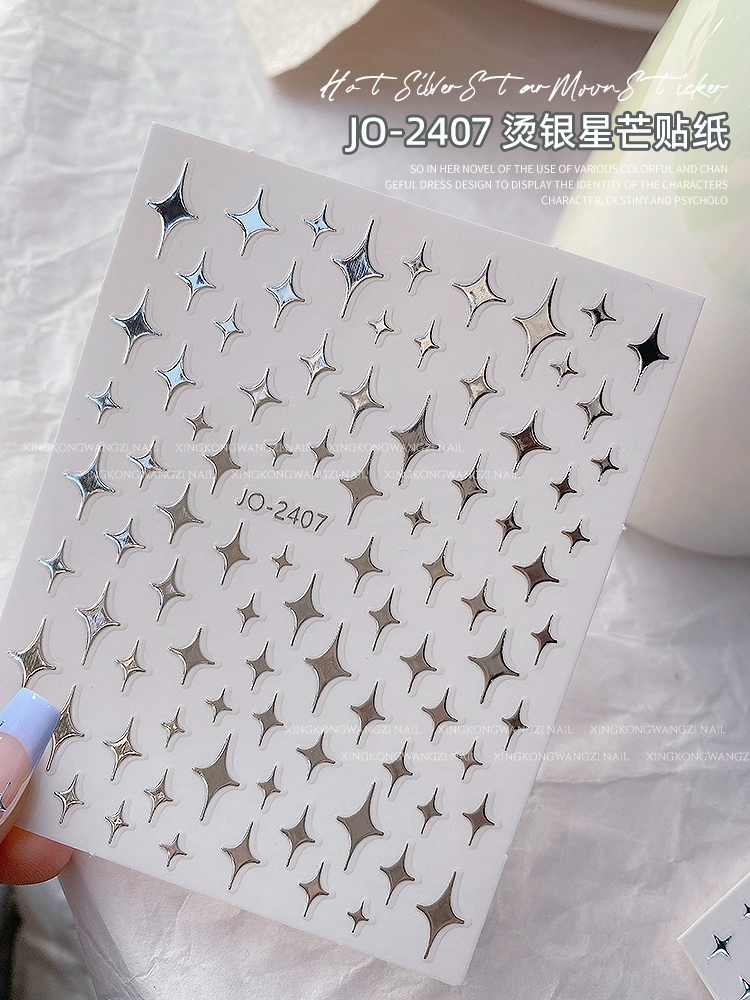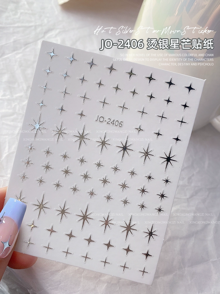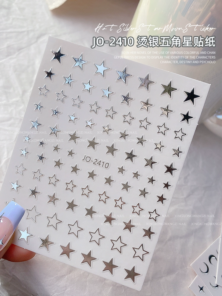 | nameOriginal | Internet celebrity popular hot silver star manicure stickers 2024 new star cross with adhesive finger nail decorations |
