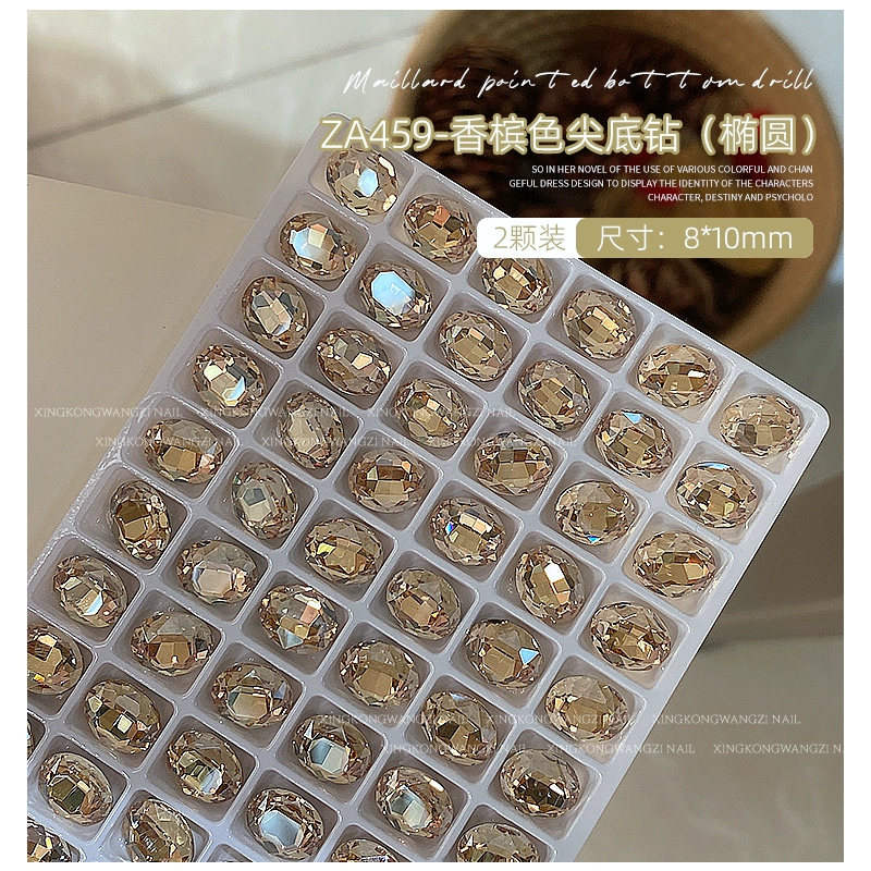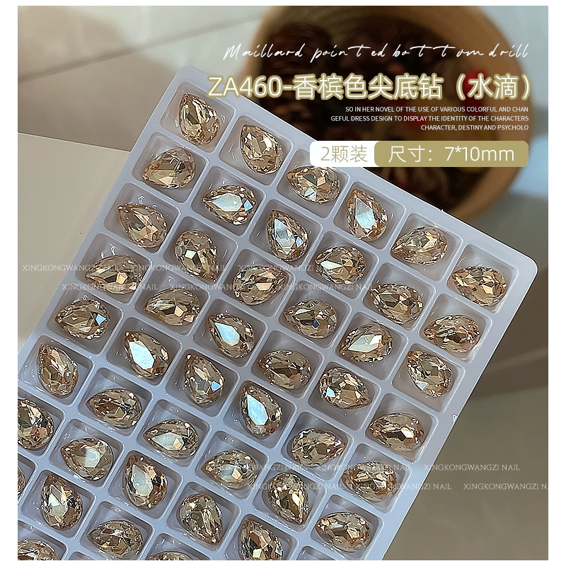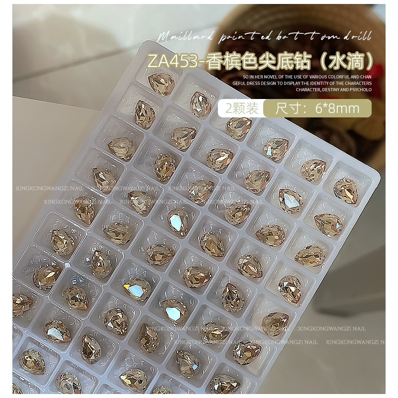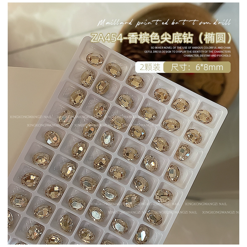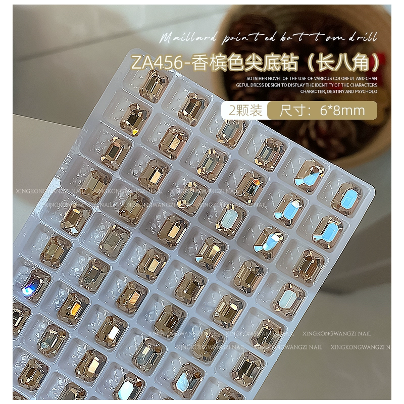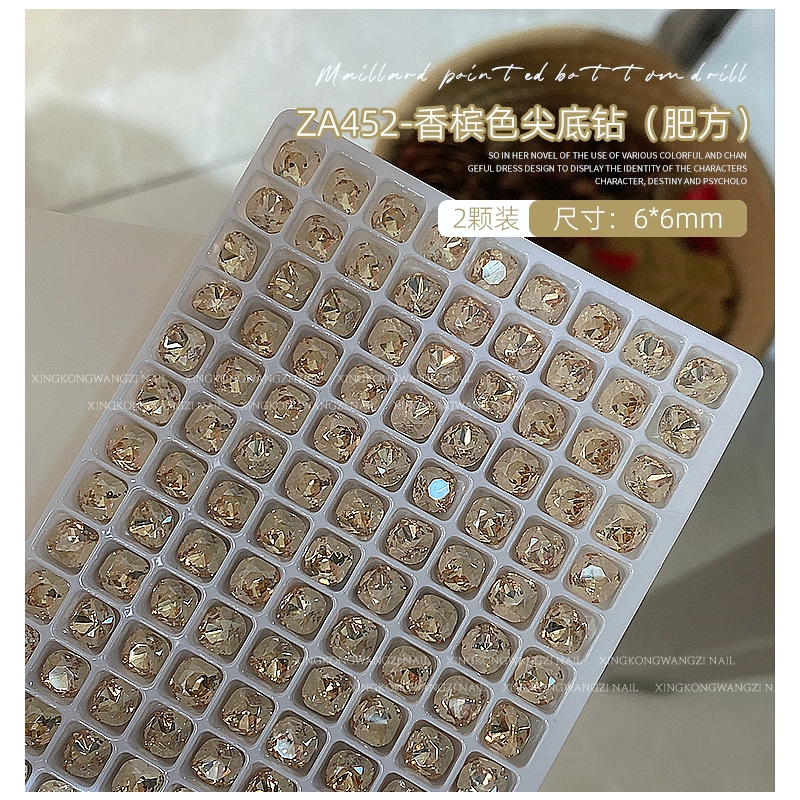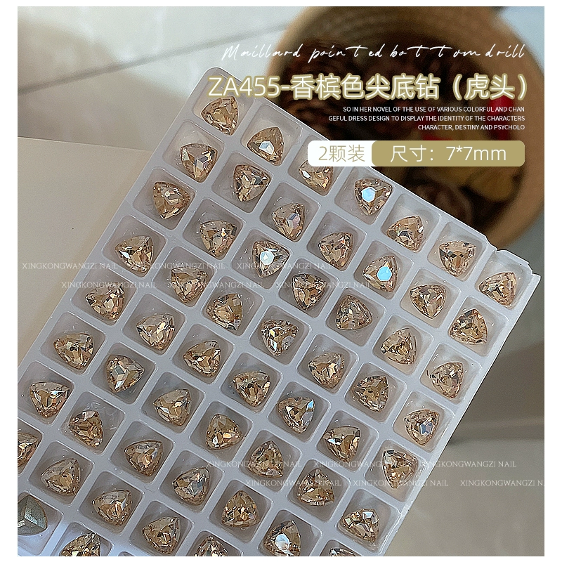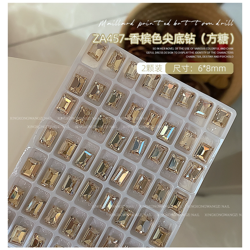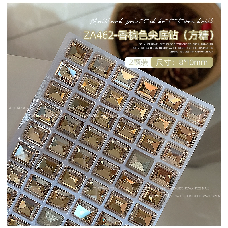 Internet celebrity popular Maillard K9 pointed base diamond 2024 new manicure fashion high-end champagne square nail decoration transparent diamond