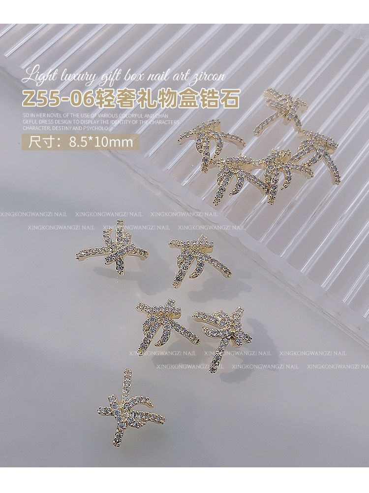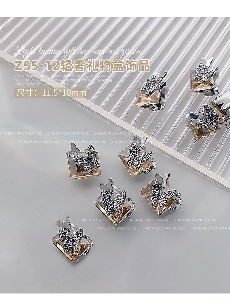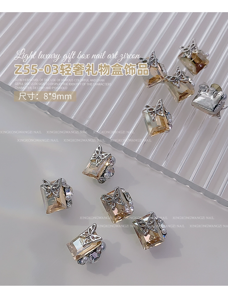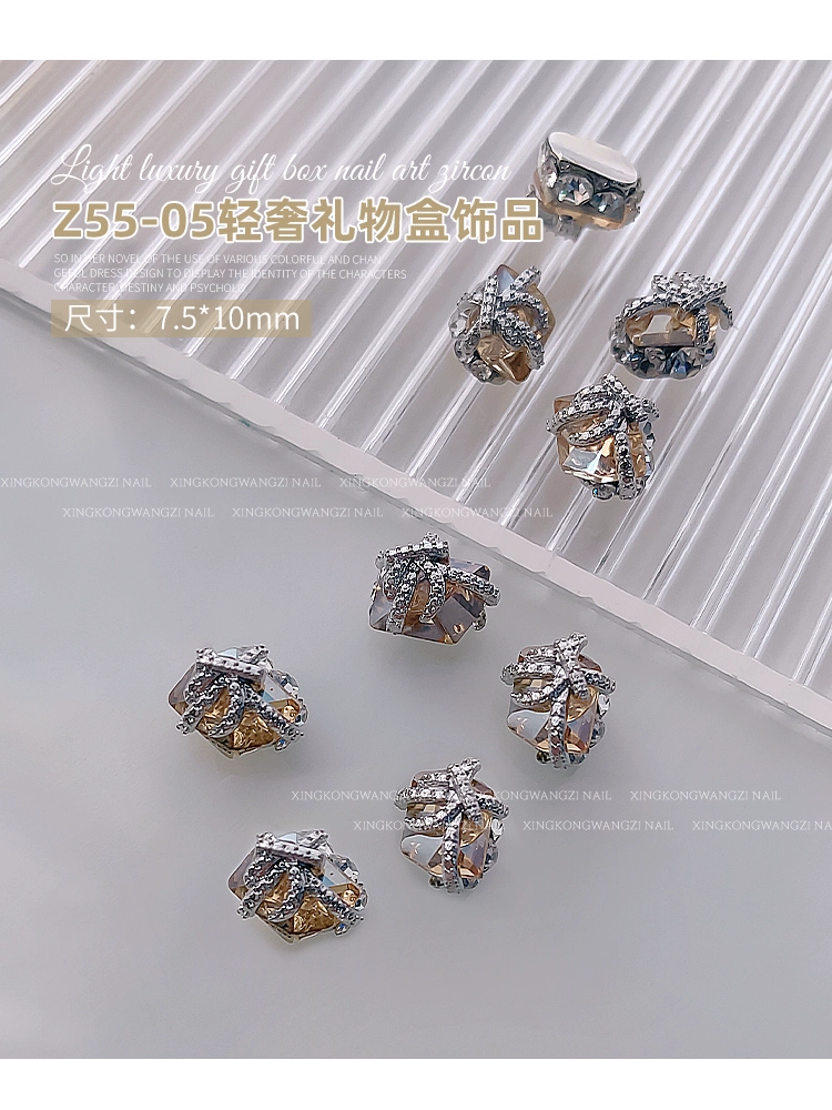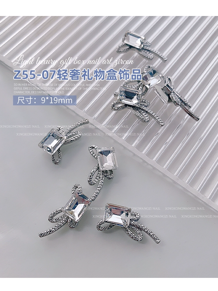 | nameOriginal | Internet celebrity popular nail art gift box zircon 2024 new bow sugar cube diamond alloy nail decoration Z55 |