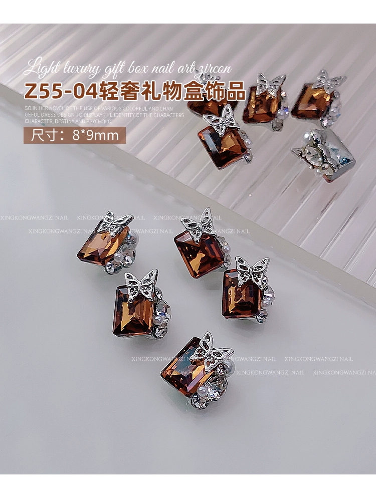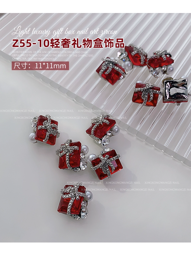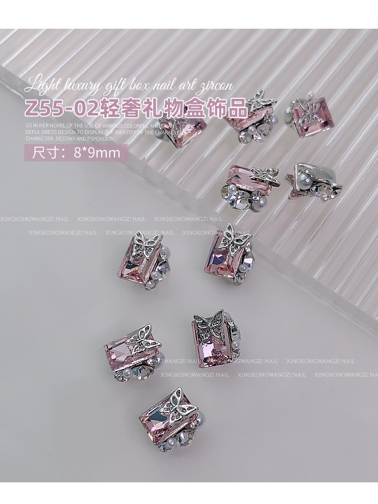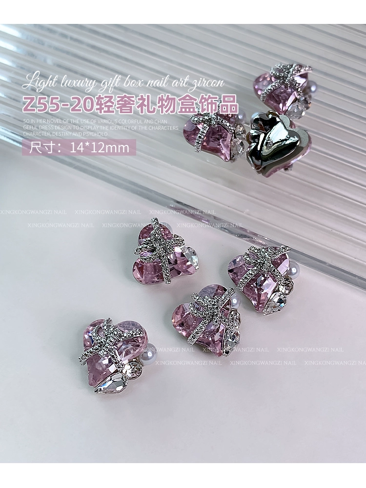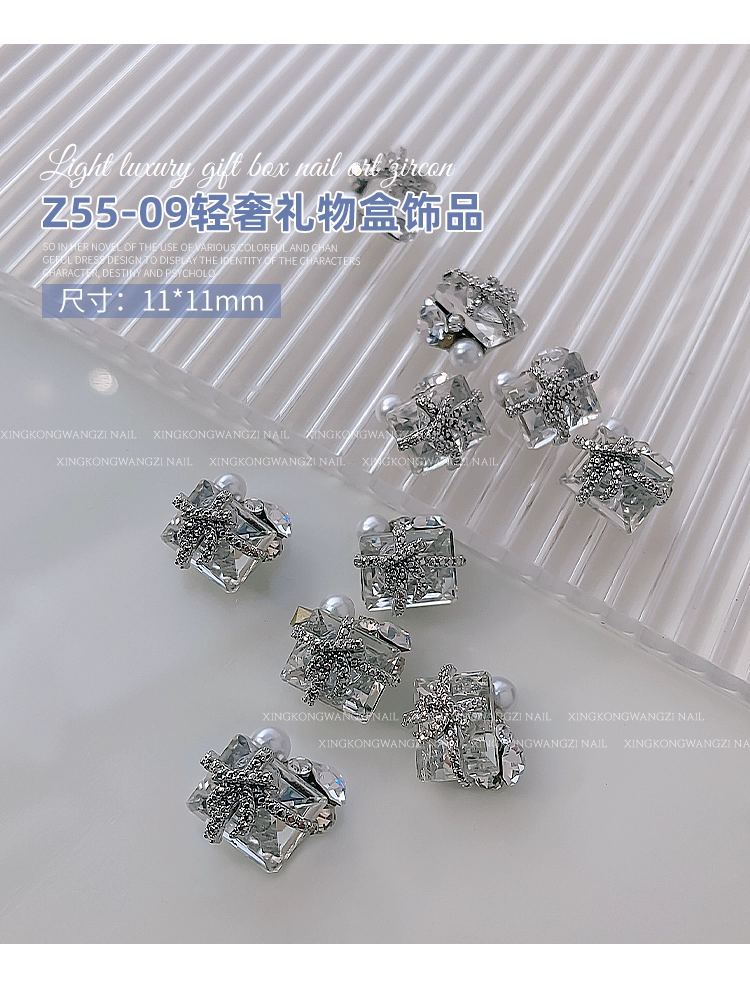 | nameOriginal | Internet celebrity popular nail art gift box zircon 2024 new bow sugar cube diamond alloy nail decoration Z55 |