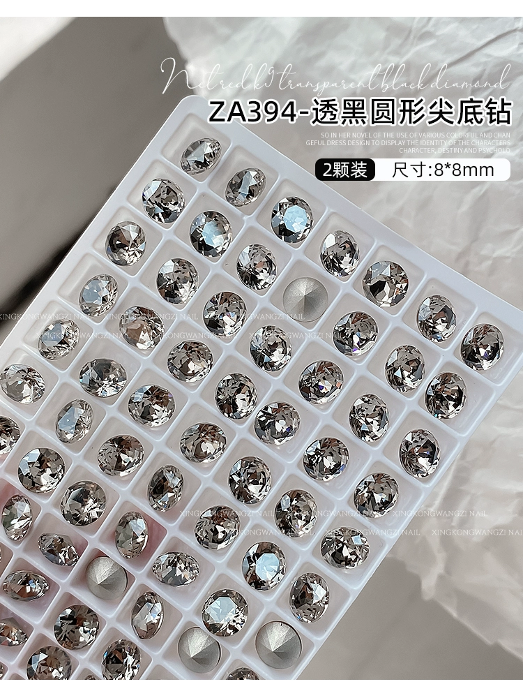 | nameOriginal | Internet celebrity popular nail art K9 transparent black series sharp bottom diamond 2024 new style flashing crooked heart pigeon egg nail decoration |