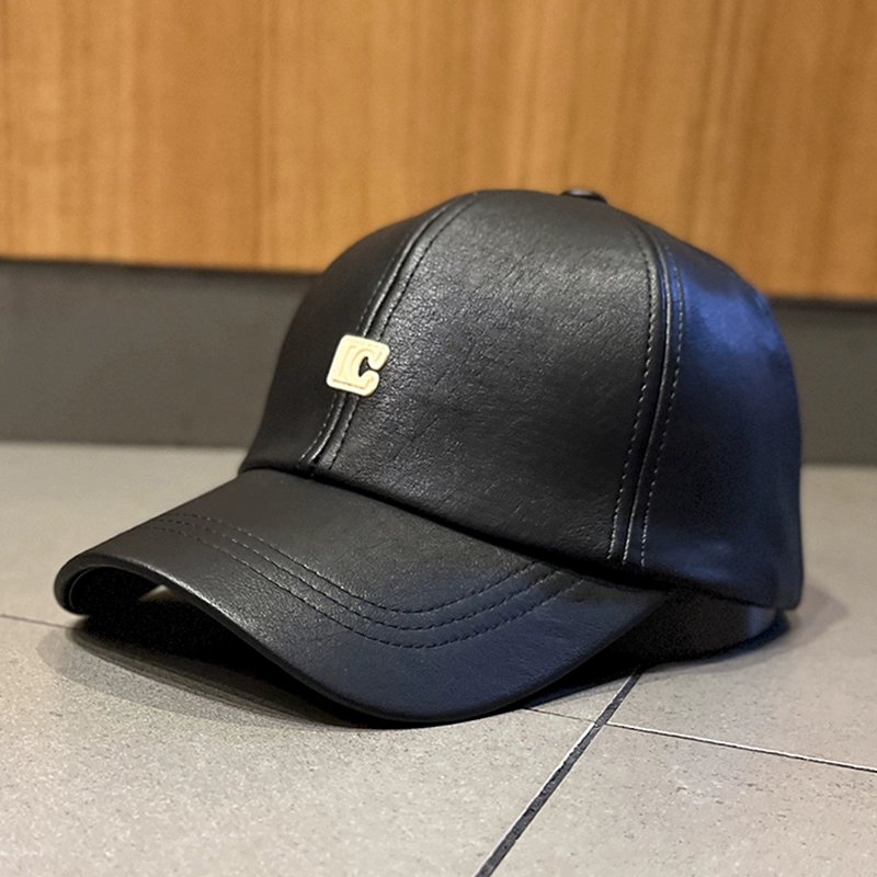 Internet celebrity pu leather women's wide brim hard top retro baseball cap