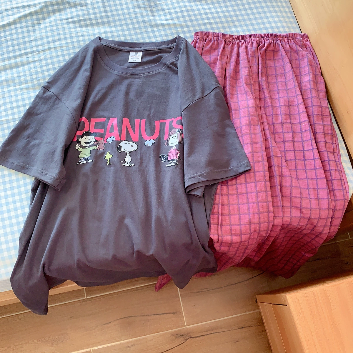 | nameOriginal | Internet celebrity pure cotton women's round neck short-sleeved trousers cartoon pajamas |