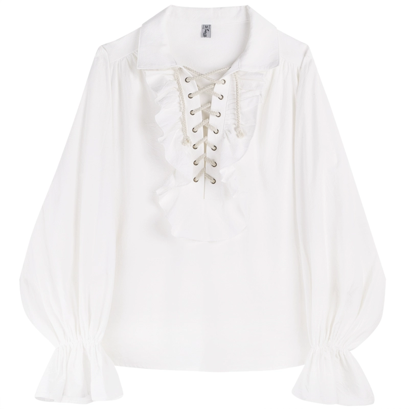 | nameOriginal | Internet celebrity retro ruffled drawstring long-sleeved palace neckline |