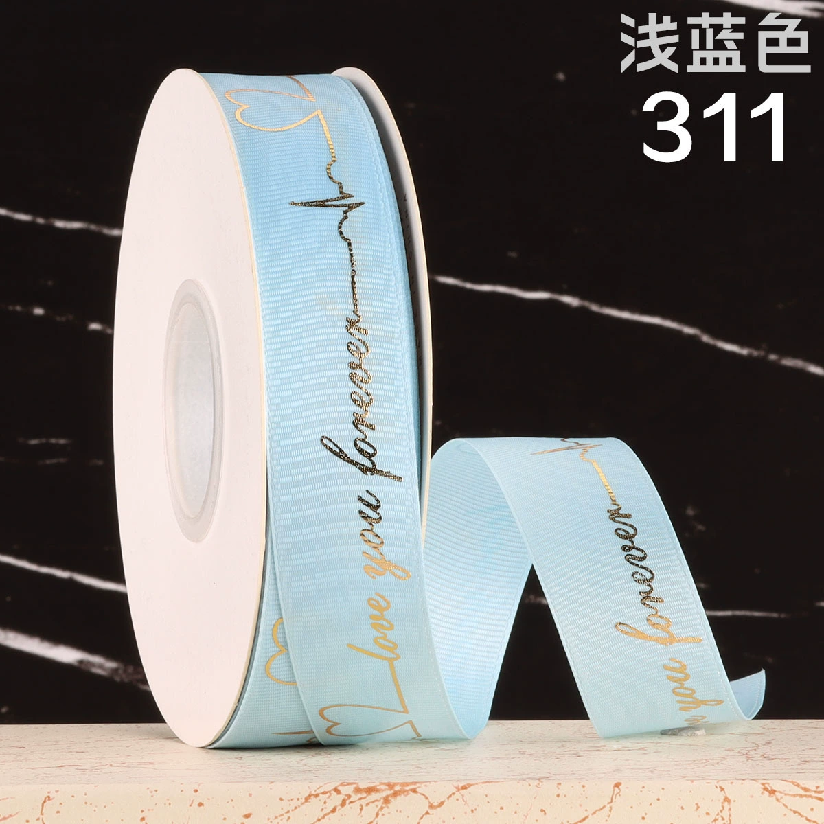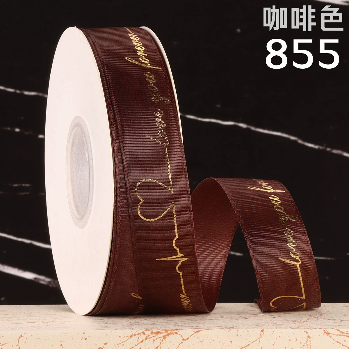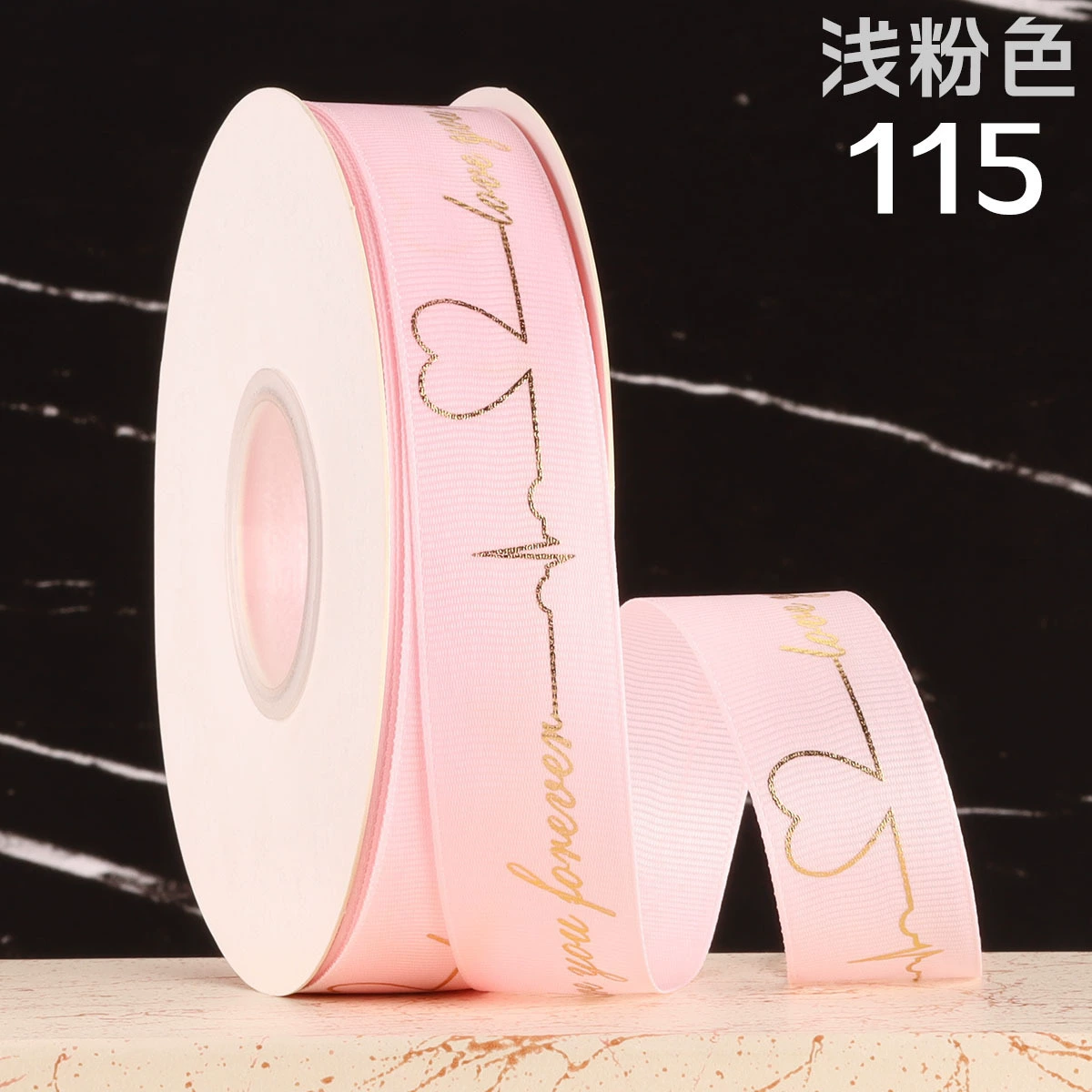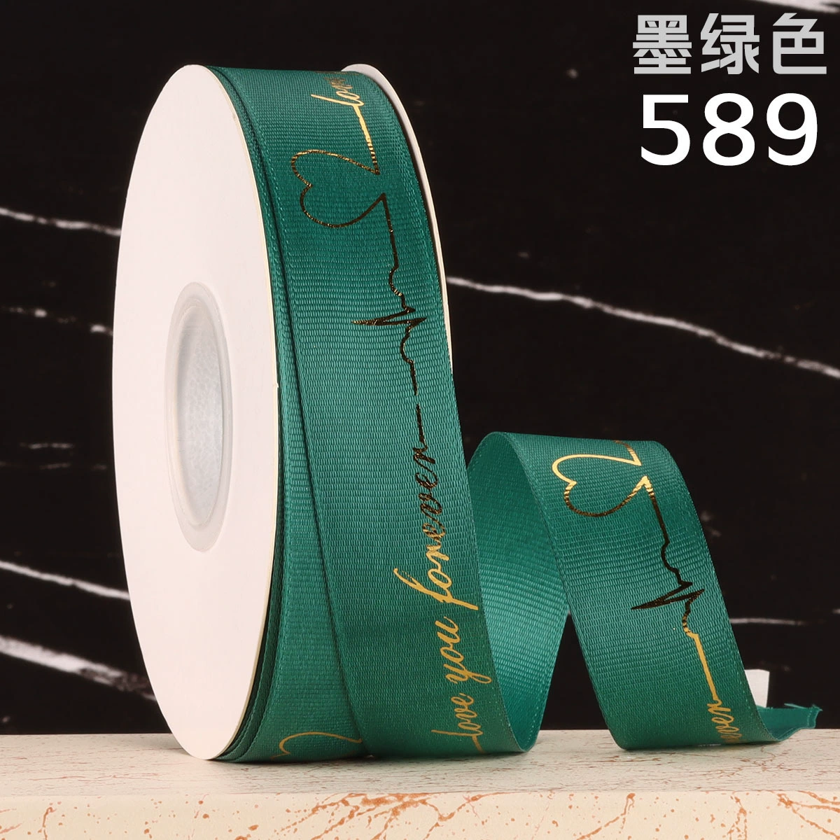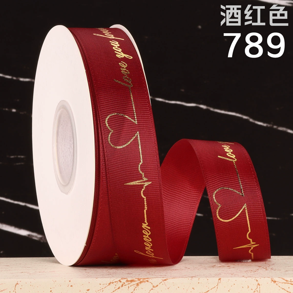 Internet celebrity ribbon hot stamping ribbed heartbeat ribbon floral packaging ribbon heartbeat threaded ribbon 2.5cm gift ribbon