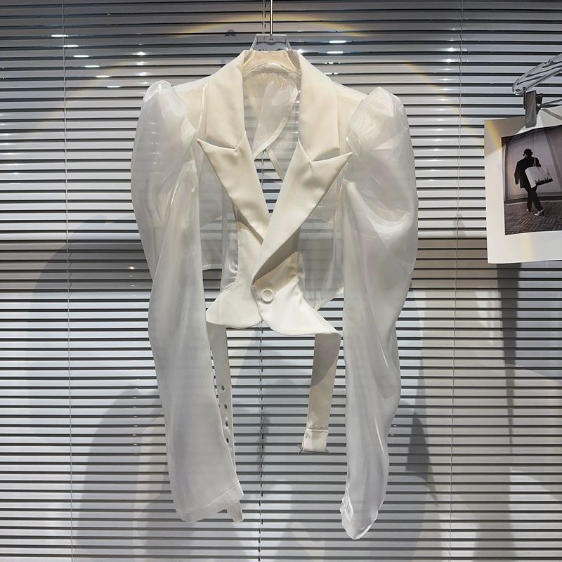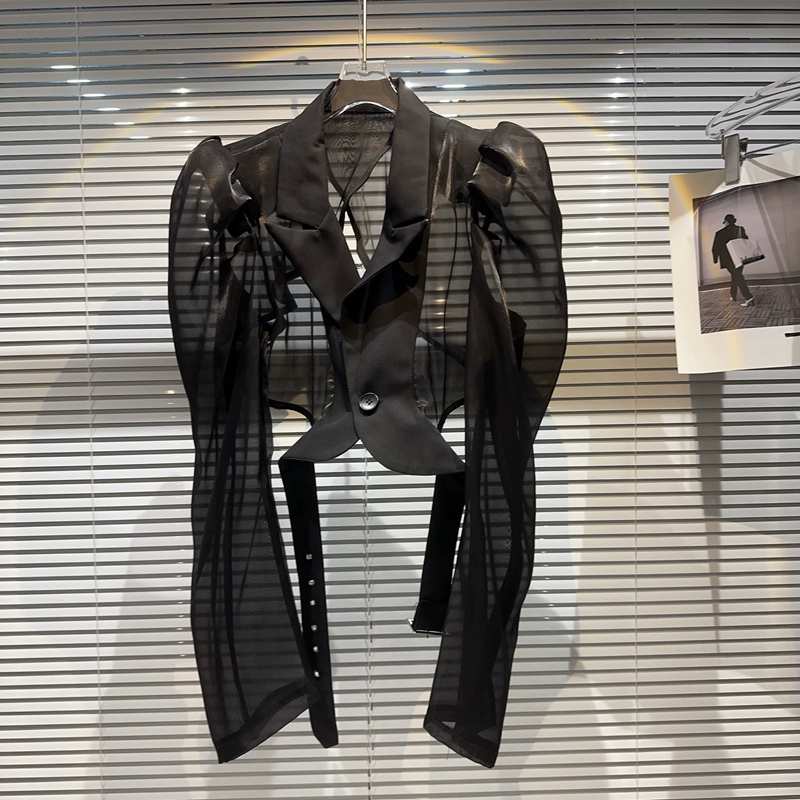 | nameOriginal | Internet celebrity same style 2024 summer dark hot girl strapped waist shoulder pads puff sleeves glass silk sun protection suit short jacket |