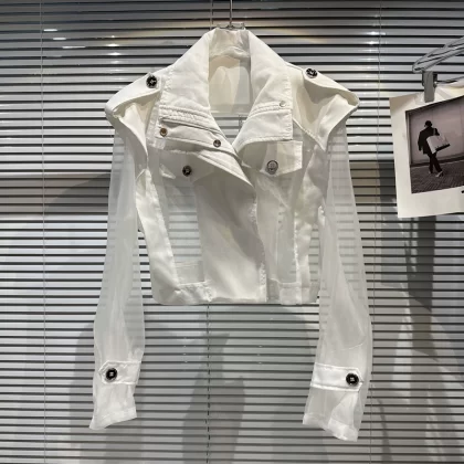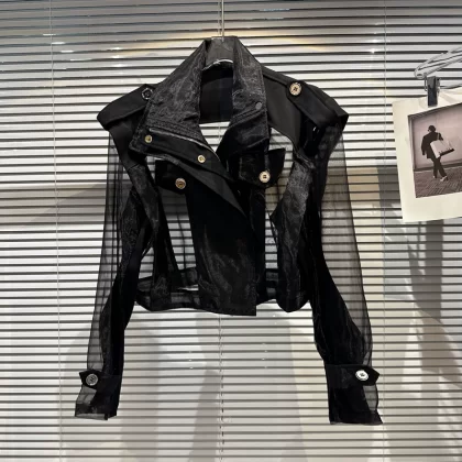 | nameOriginal | Internet celebrity same style 2024 summer new niche hot girl mesh design shoulder straps shoulder pads sun protection jacket short coat trendy |