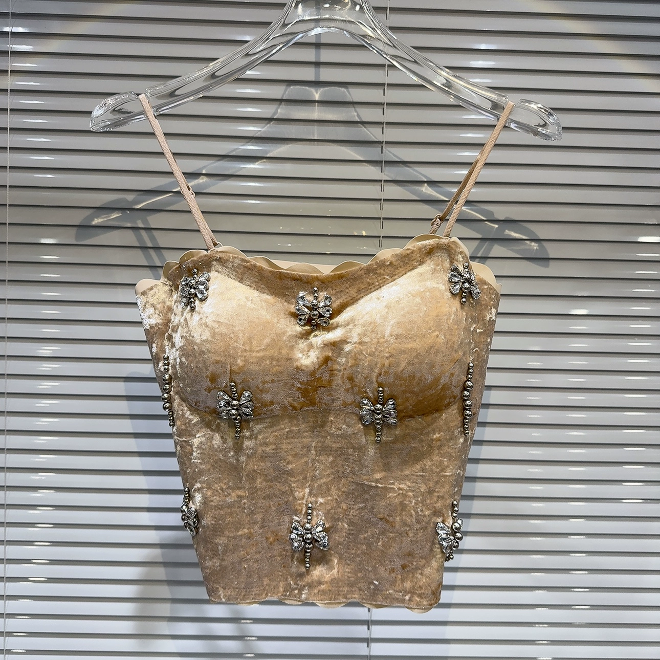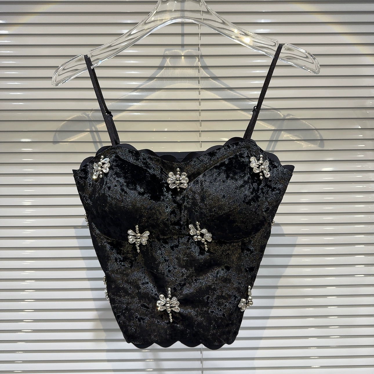 | nameOriginal | Internet celebrity same style 2024 winter new style small fragrance feng shui diamond dragonfly bead design velvet chest pad camisole for women |