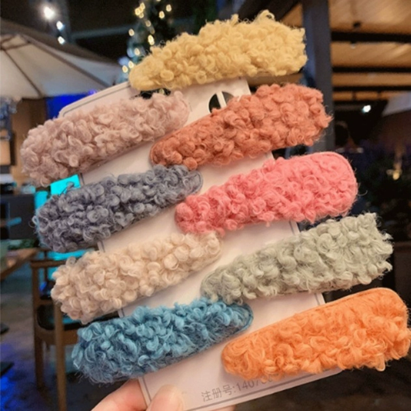 Internet celebrity side silk scarf plush headwear Korean hair clip