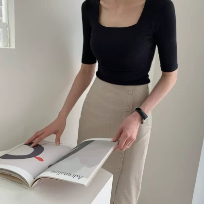 | nameOriginal | Internet celebrity slimming solid color slim fit top T-shirt short sleeves |