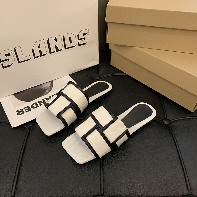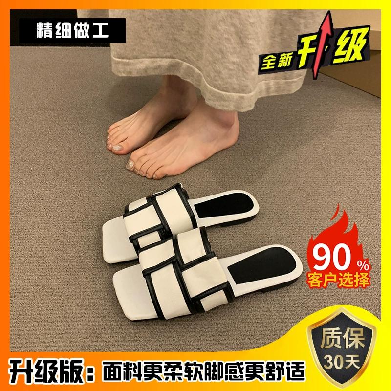 Internet celebrity slippers for women’s summer outer wear 2024 new super popular versatile braided square toe flat beach sandals