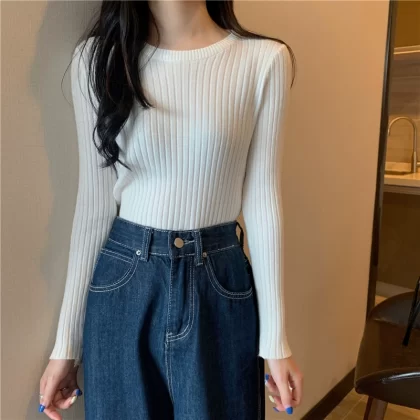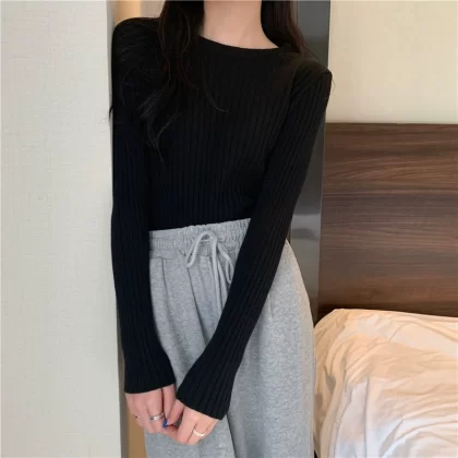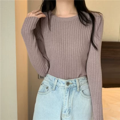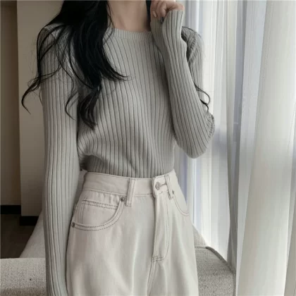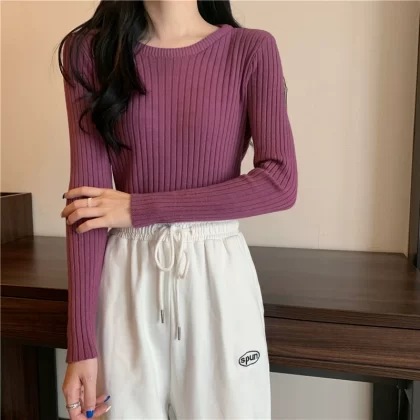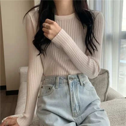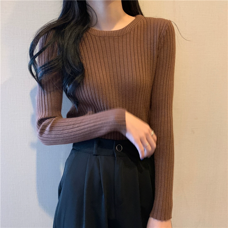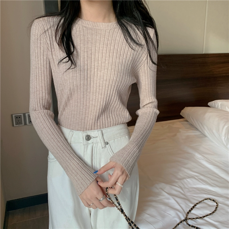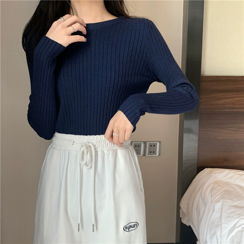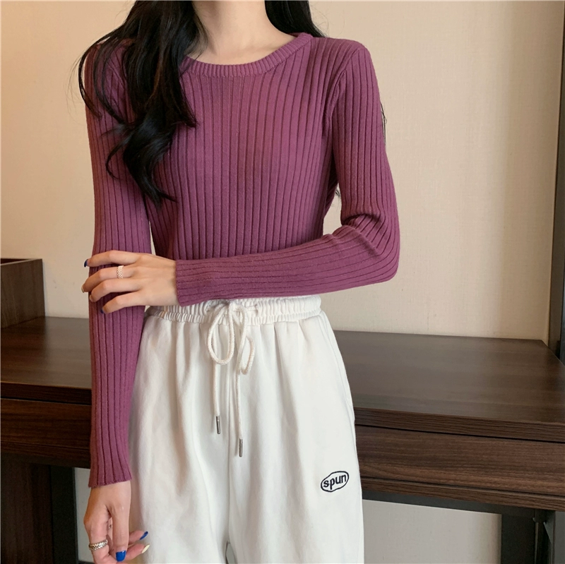 Internet celebrity solid color sweater pit striped long sleeve pullover