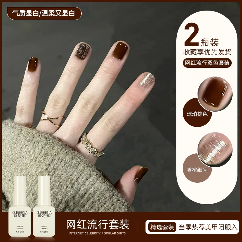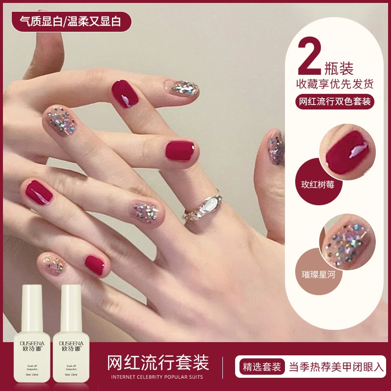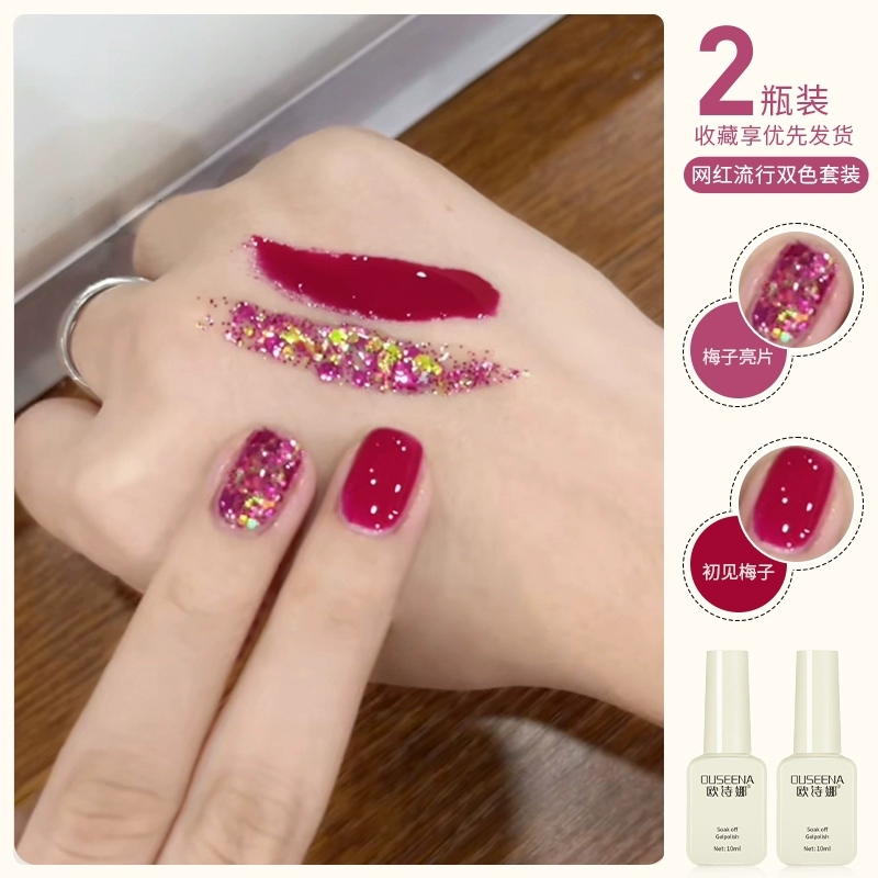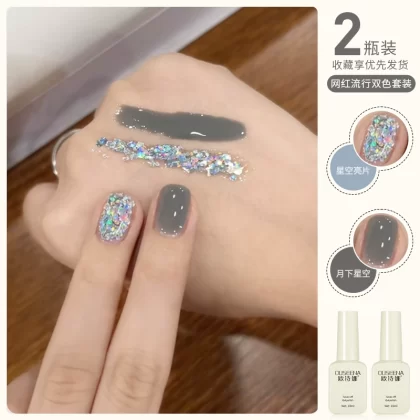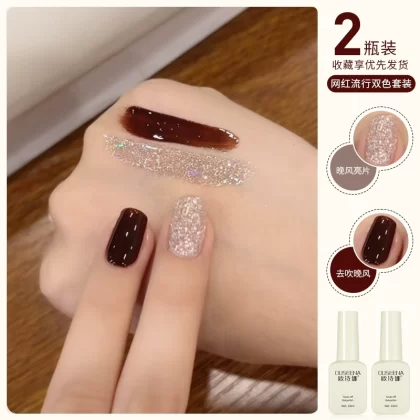 Internet celebrity spring and summer explosive glitter diamond two-color nail polish