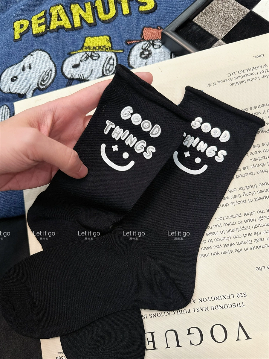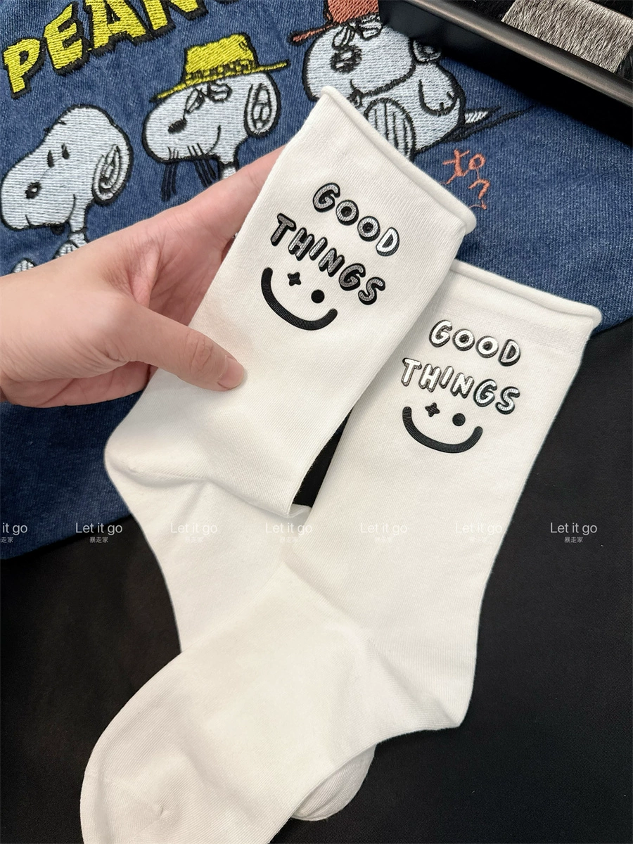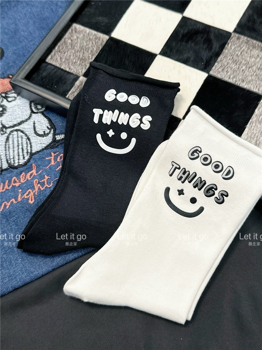 | nameOriginal | Internet celebrity spring pure cotton smiley face curled Korean style socks |
