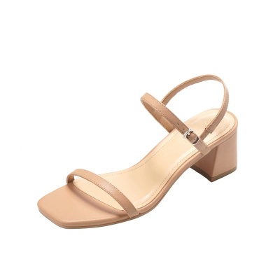 | nameOriginal | Internet celebrity square toe thick heel simple evening shoes with one word buckle |