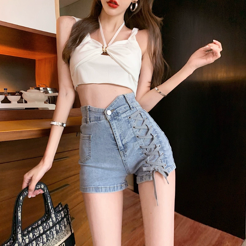 | nameOriginal | Internet celebrity strappy high waist a line light color ins denim shorts |
