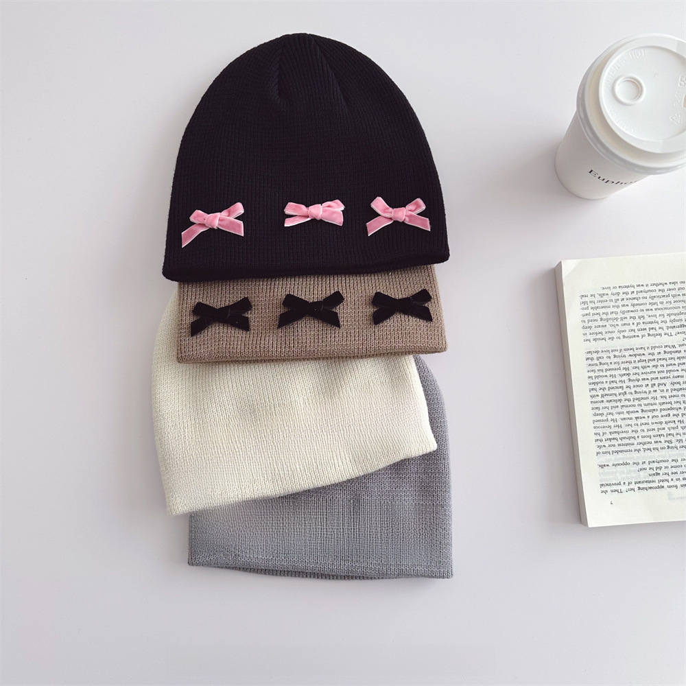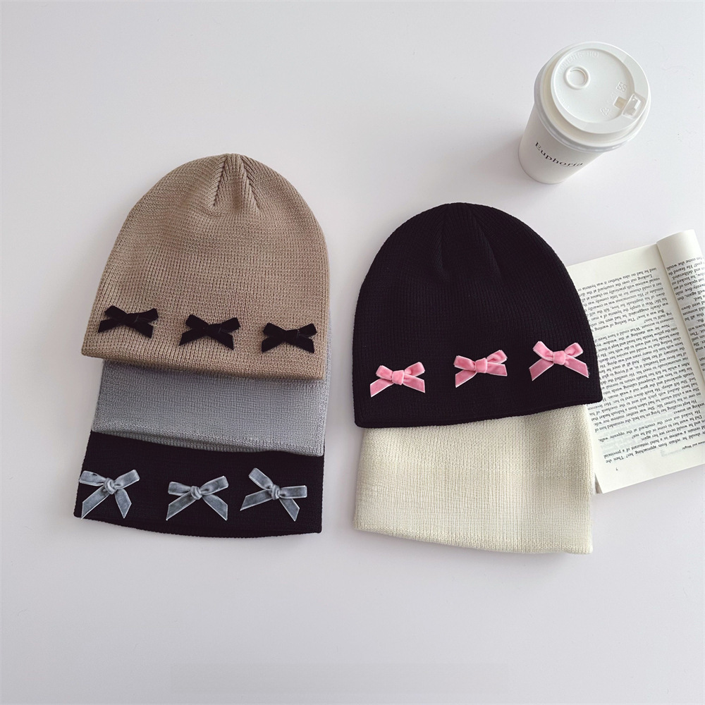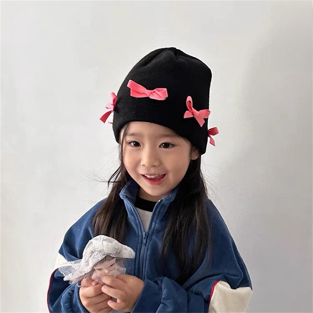 | nameOriginal | Internet celebrity style children's bow knitted hat Japanese style personality trendy baby cold hat melon hat pullover wool hat |