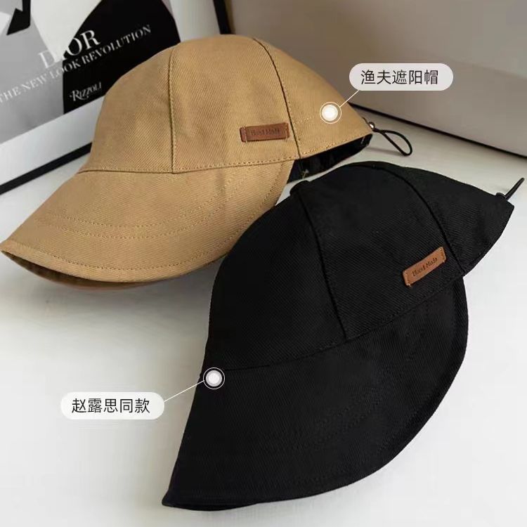 Internet celebrity style Zhao Lusi fisherman hat female 2023 spring and summer sun protection sun hat new big brim plain hat