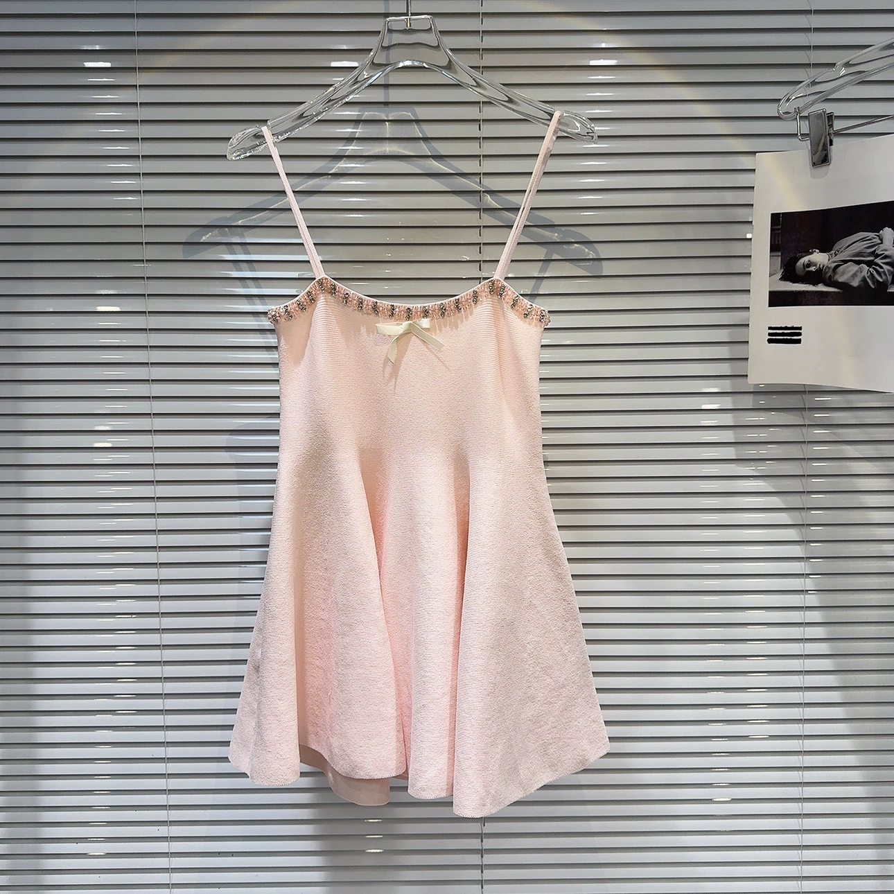 Internet celebrity summer fragrant style suspender skirt with rhinestone beads