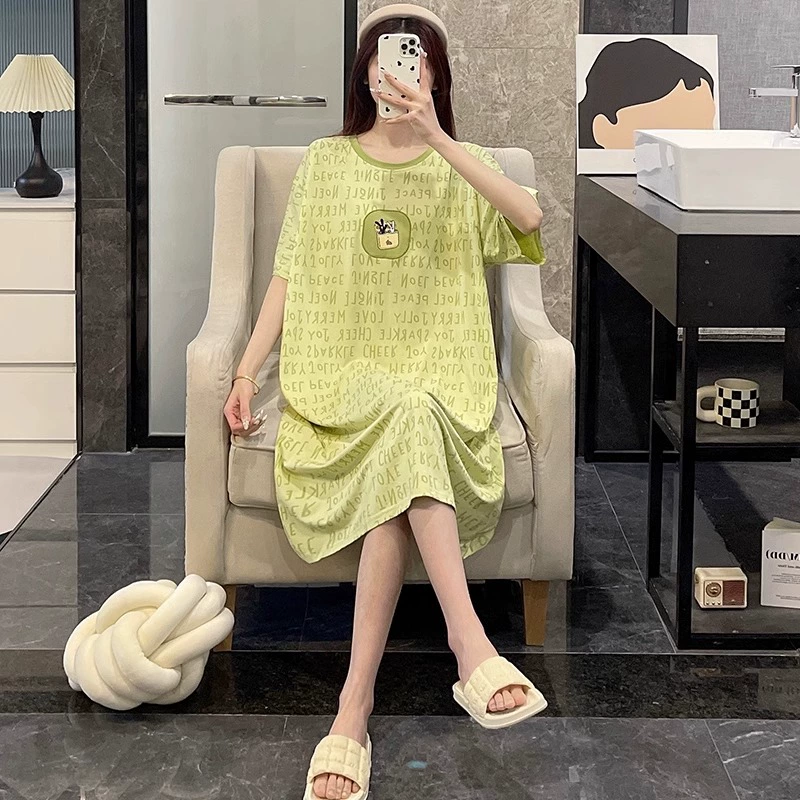 | nameOriginal | Internet celebrity summer pure cotton emerald green student nightgown for fat mm |