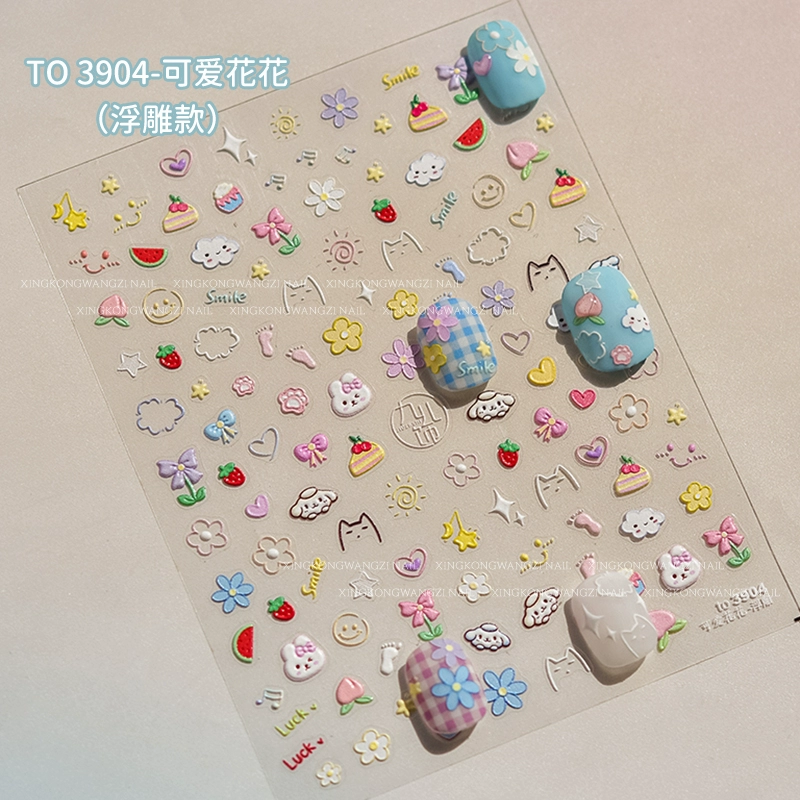 | nameOriginal | Internet celebrity summer three-dimensional flower sticker 2024 new bow cute pattern embossed nail decal decoration |