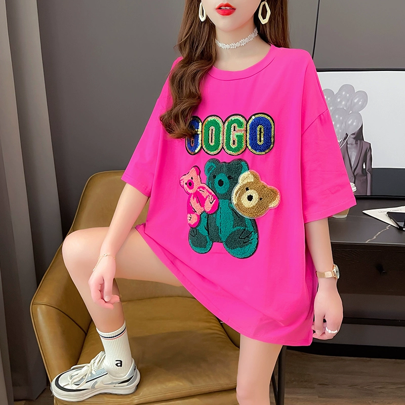 Net Red Super Fire CEC Heavy Industry Embroidery Female Short Sleeve T -shirt
